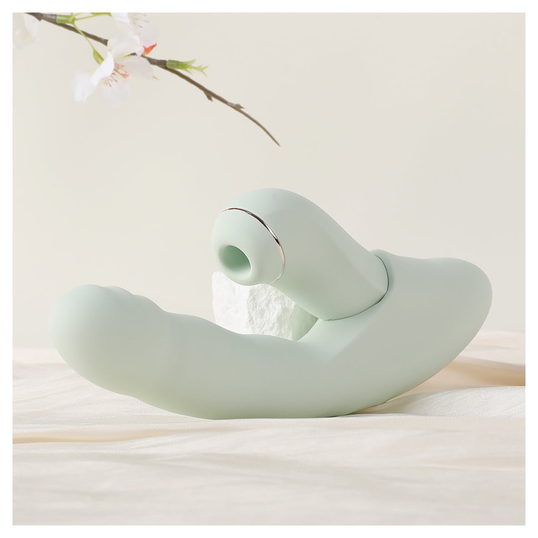 Мятный вибратор-кролик Fatima длиной 19 см - это уникальный стимулятор, сочетающий 5 мощных режимов вакуумной стимуляции, 7 интенсивных режимов возвратно-поступательных движений и 10 вибрационных режимов для полного контроля над вашим удовольствием. Съемный дизайн позволяет комбинировать различные варианты использования, предлагая множество комбинаций для индивидуального опыта. Двойной нагрев до 42 градусов создает эффект реалистичного тепла, усиливая ощущение интимности, а эргономичная форма адаптируется под любые углы для максимального комфорта. Пульт дистанционного управления делает игрушку идеальной для одиночных или парных игр.