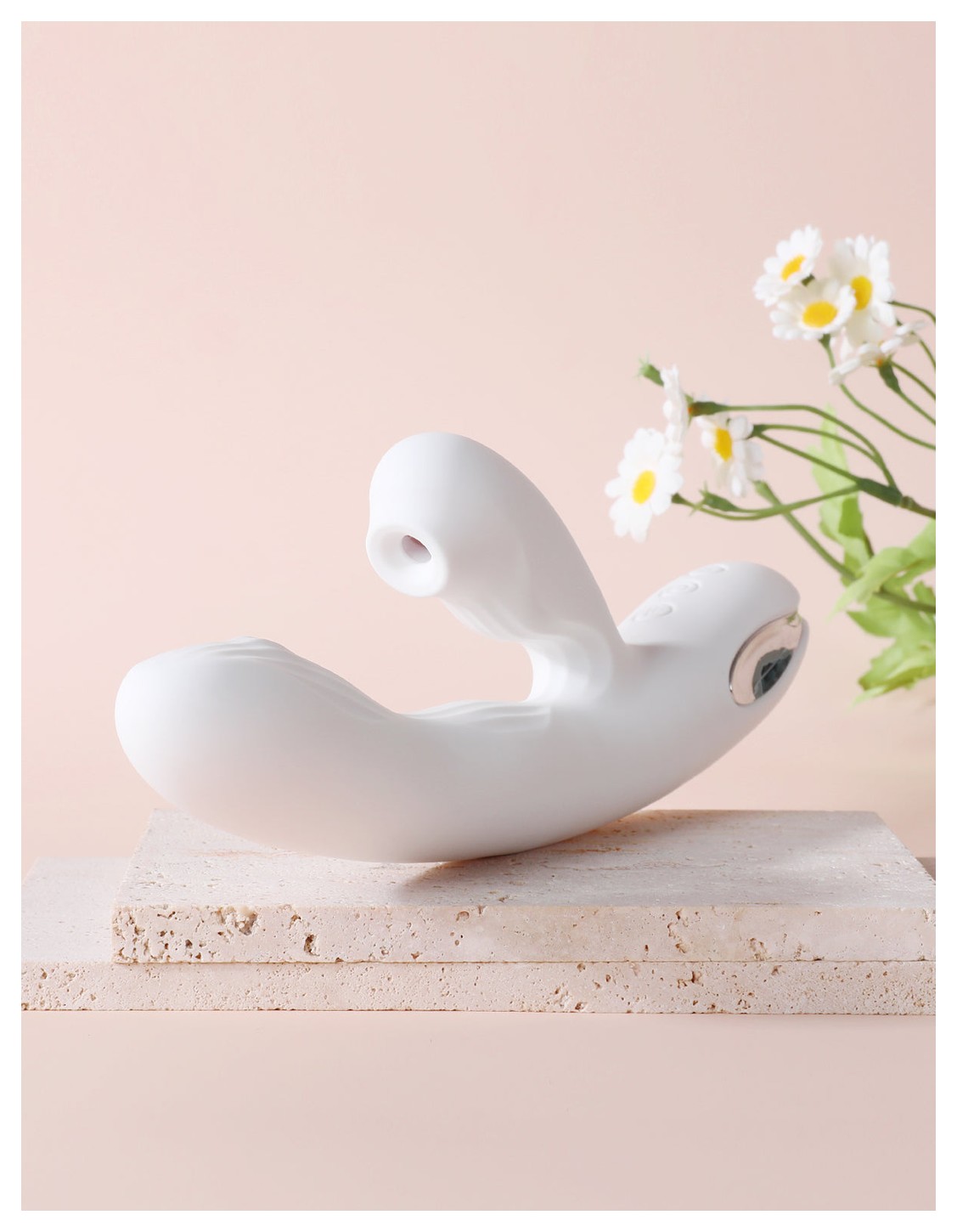 Белый вибратор-кролик Eria - это многофункциональный стимулятор, который сочетает в себе 10 мощных режимов вакуумной стимуляции и 5 режимов вибрации с функцией постукивания для одновременной стимуляции клитора и точки G. Благодаря эргономичному дизайну устройство легко адаптируется под разную анатомию, а функция нагрева до 42 градусов добавляет реалистичности к ощущениям, соответствующей теплу человеческого тела. Мягкий силикон придает устройству шелковистую текстуру, обеспечивая комфортное и нежное прикосновение. Эргономичная форма идеально лежит в руке и легко направляется к эрогенным зонам, что делает использование интуитивно понятным и комфортным.