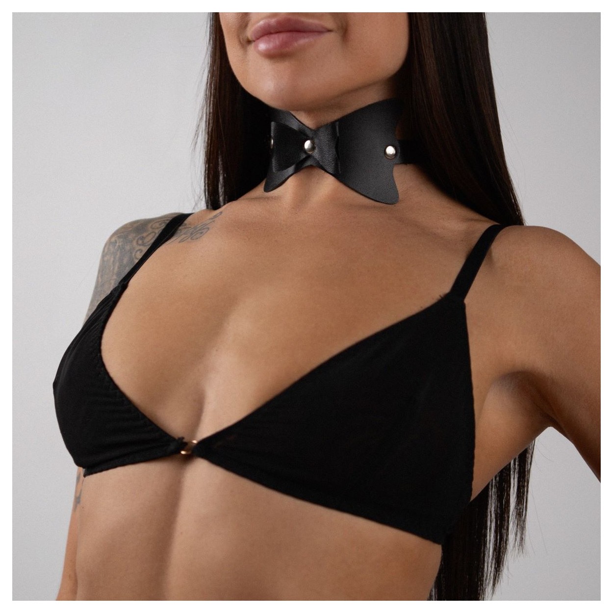 Набор фиксаций с бантиками из черной натуральной кожи