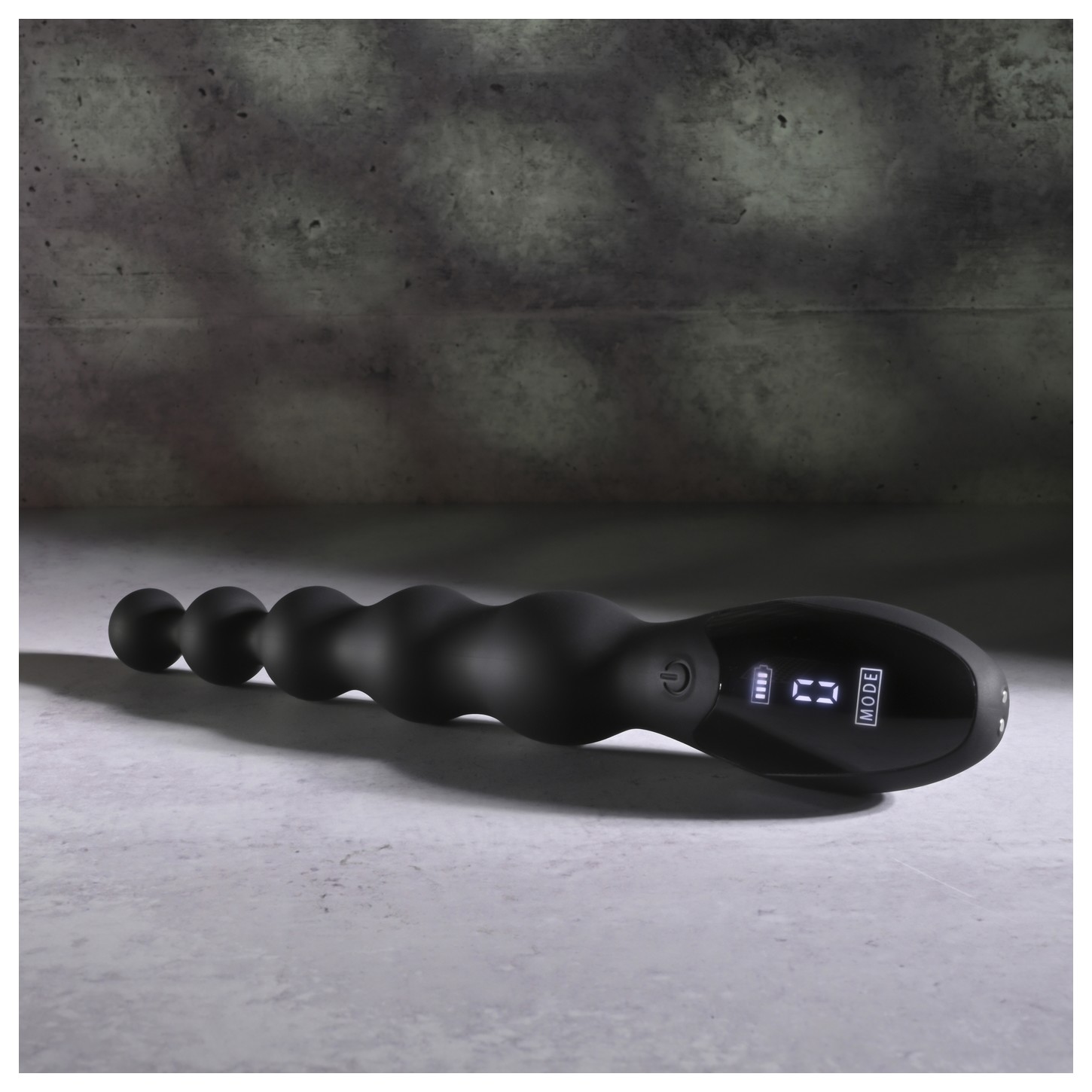 Нанесите обильное количество анальной смазки на стимулятор и анус. Медленно вводите, проходя по одному звену. Включите вибрацию, выбирайте режим. Наслаждайтесь постепенным расширением. После использования промойте.