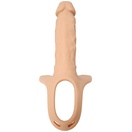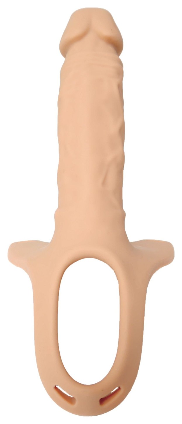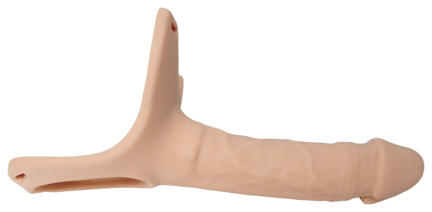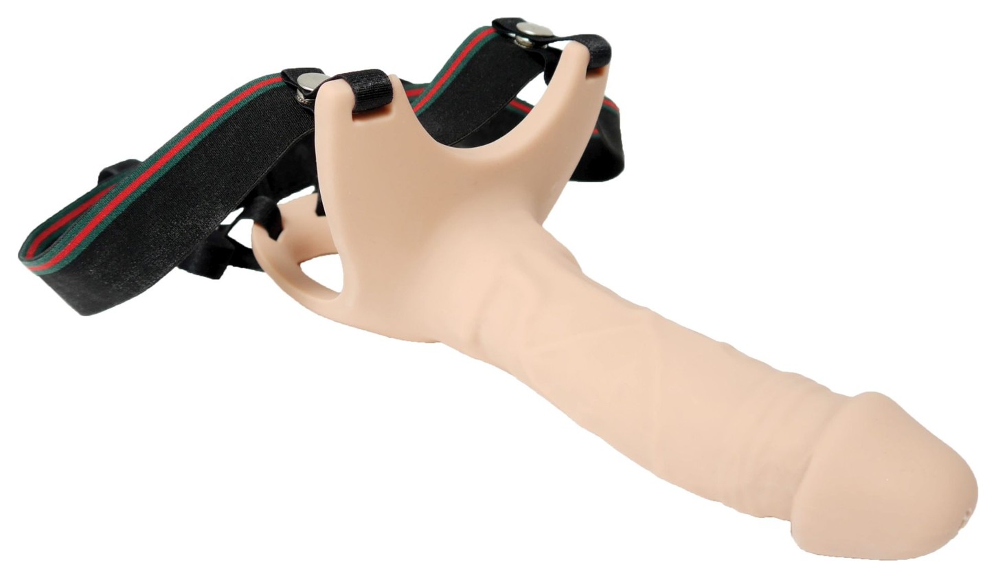 Полый страпон 16.5 - телесный полый фаллопротез на ремешках для дополнительной длины и объема. Полость длиной 12 см и диаметром 3.5 см позволяет надевать его поверх пениса. Рабочая длина 16.5 см дает заметный эффект, а конструкция рассчитана на плотную фиксацию. Эластичные ремни на липучках помогают подстроить посадку под разные размеры.