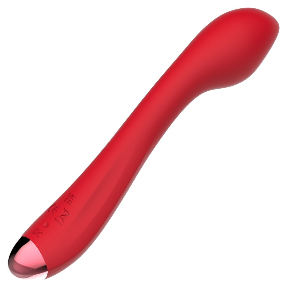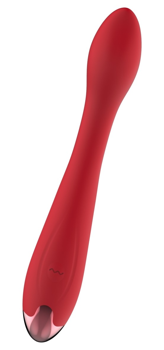 Красный изогнутый вибратор для массажа точки G - 23 см
