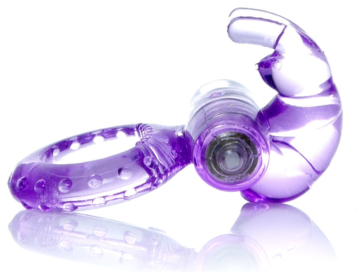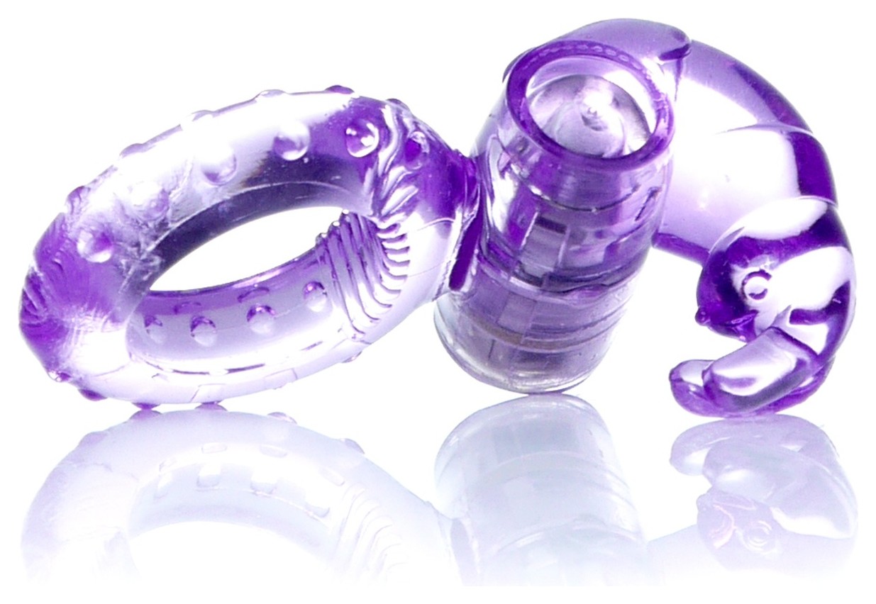 Сиреневое эрекционное виброкольцо с клиторальным зайчиком