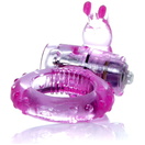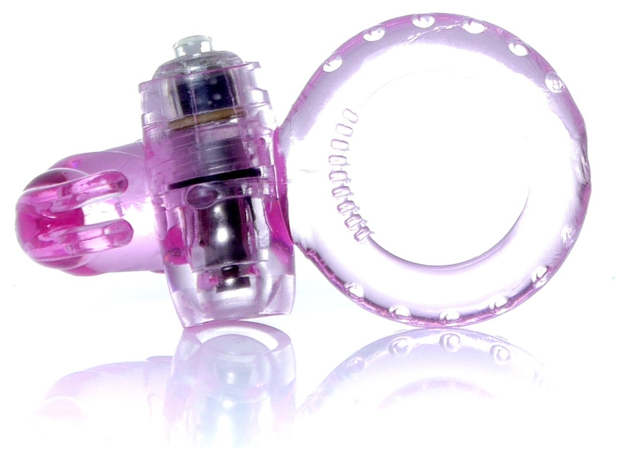 Розовое эрекционное виброкольцо с клиторальным зайчиком