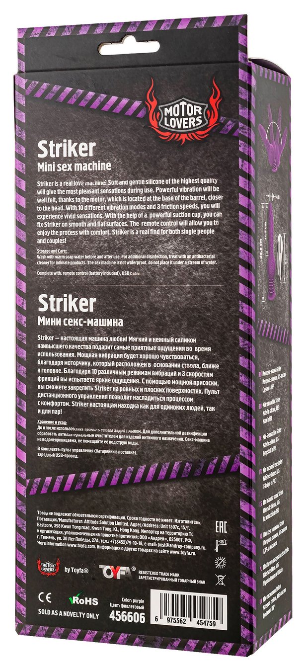 Фиолетовая мини-машина для секса Striker с пультом ДУ - 23,5 см