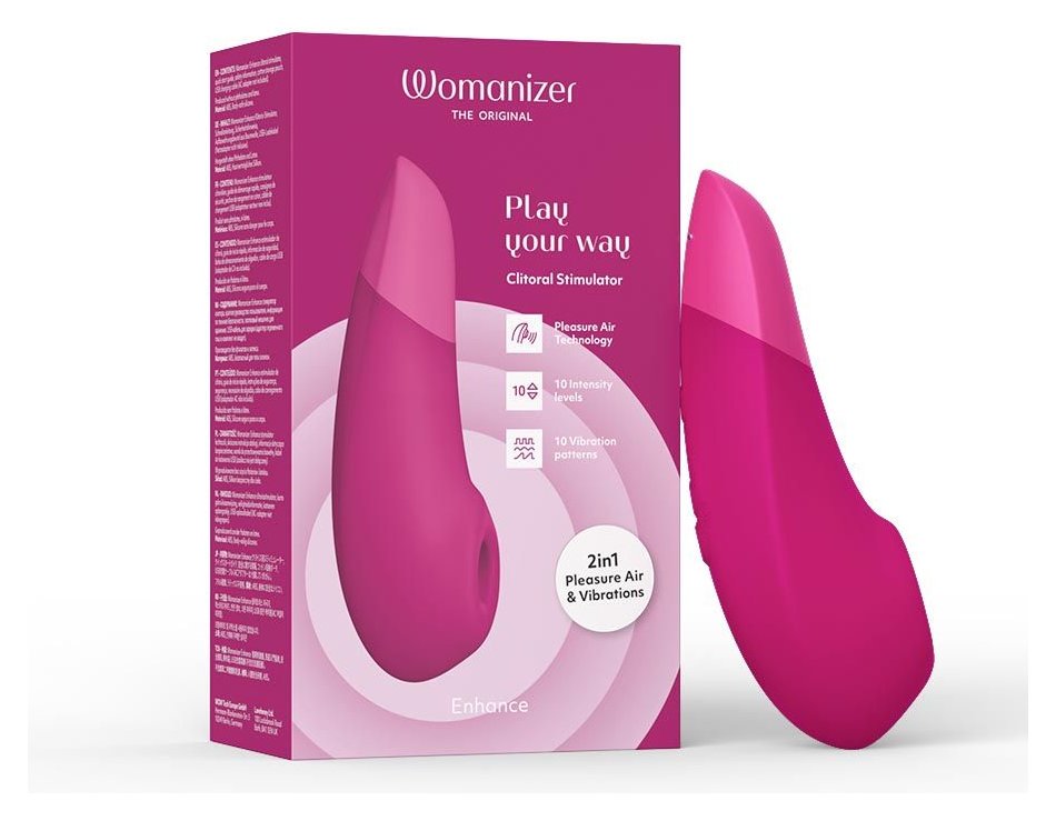 Розовый бесконтактный клиторальный стимулятор Womanizer Enhance с вибрацией
