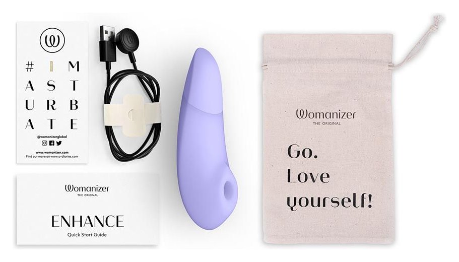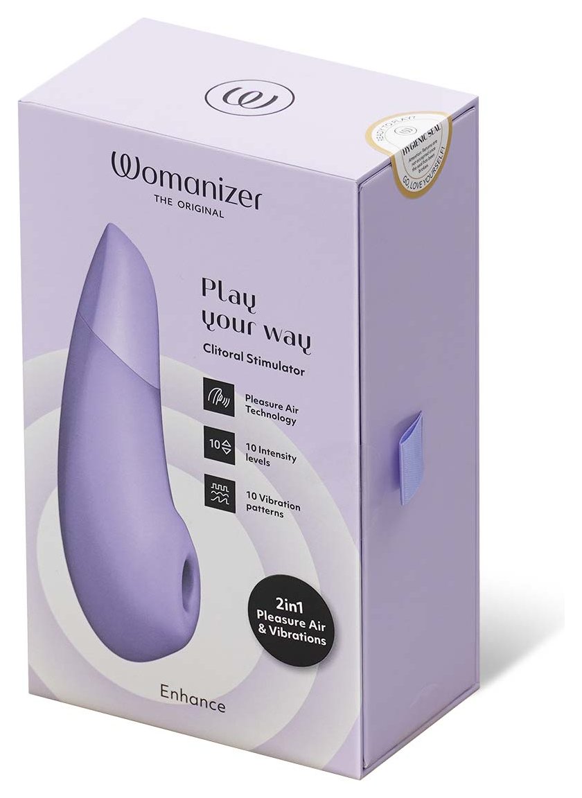 Сиреневый бесконтактный клиторальный стимулятор Womanizer Enhance с вибрацией