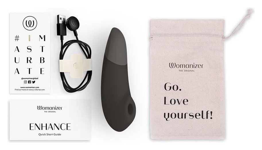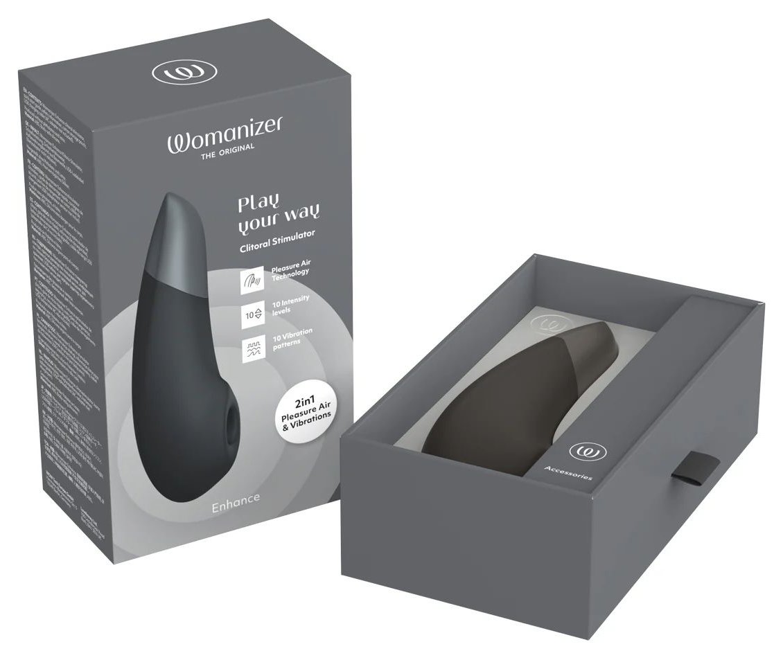 Черный бесконтактный клиторальный стимулятор Womanizer Enhance с вибрацией