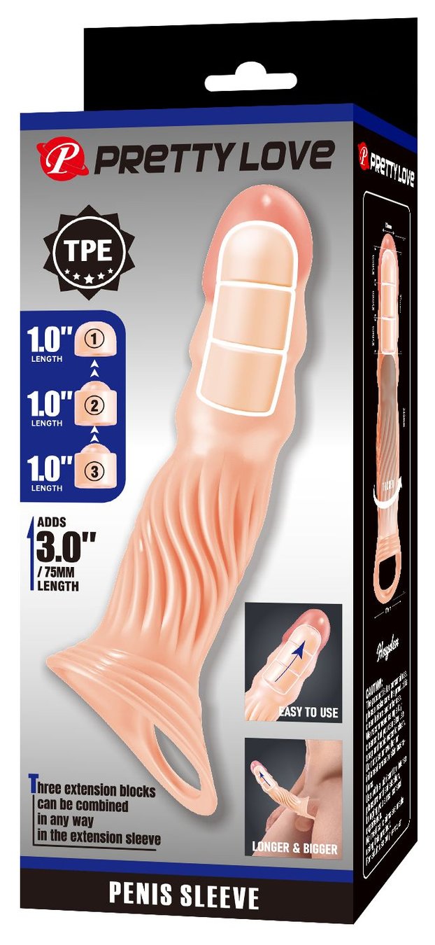 Телесная насадка на пенис с тремя вкладышами-удлинителями - 24 см