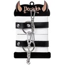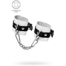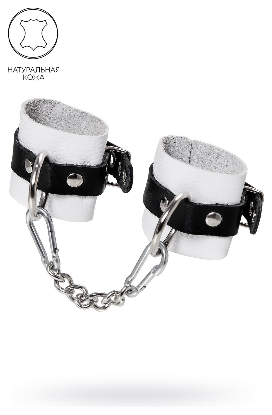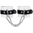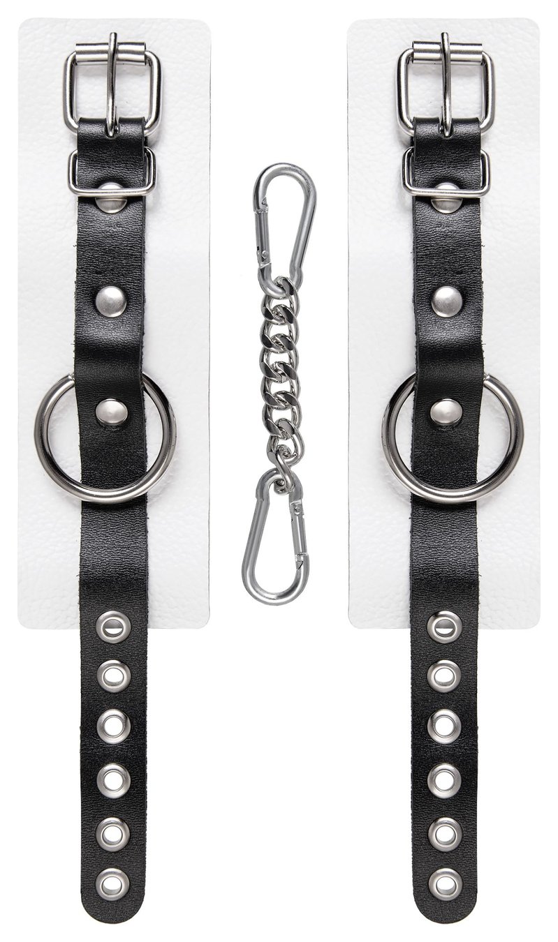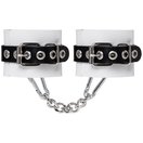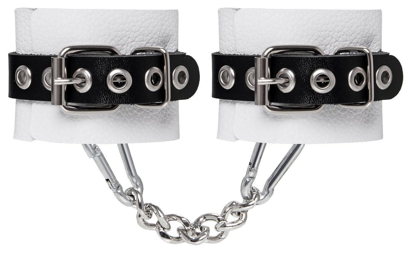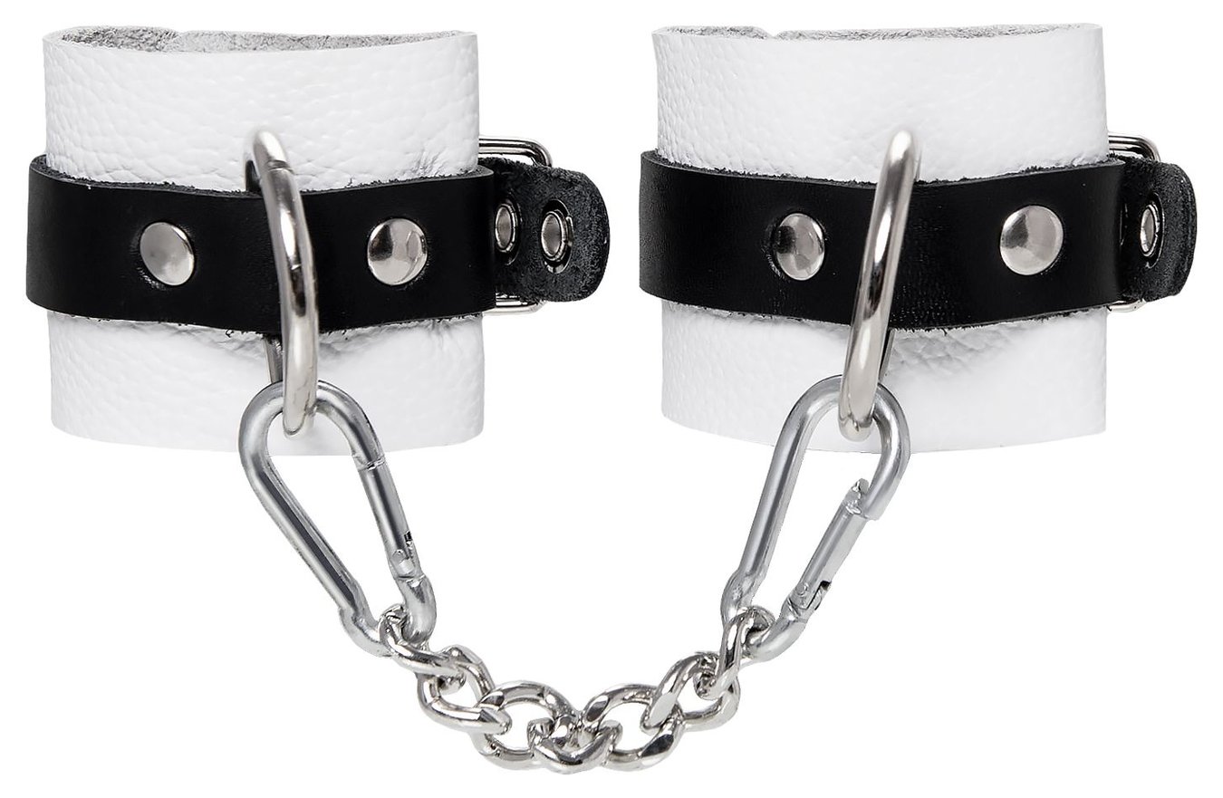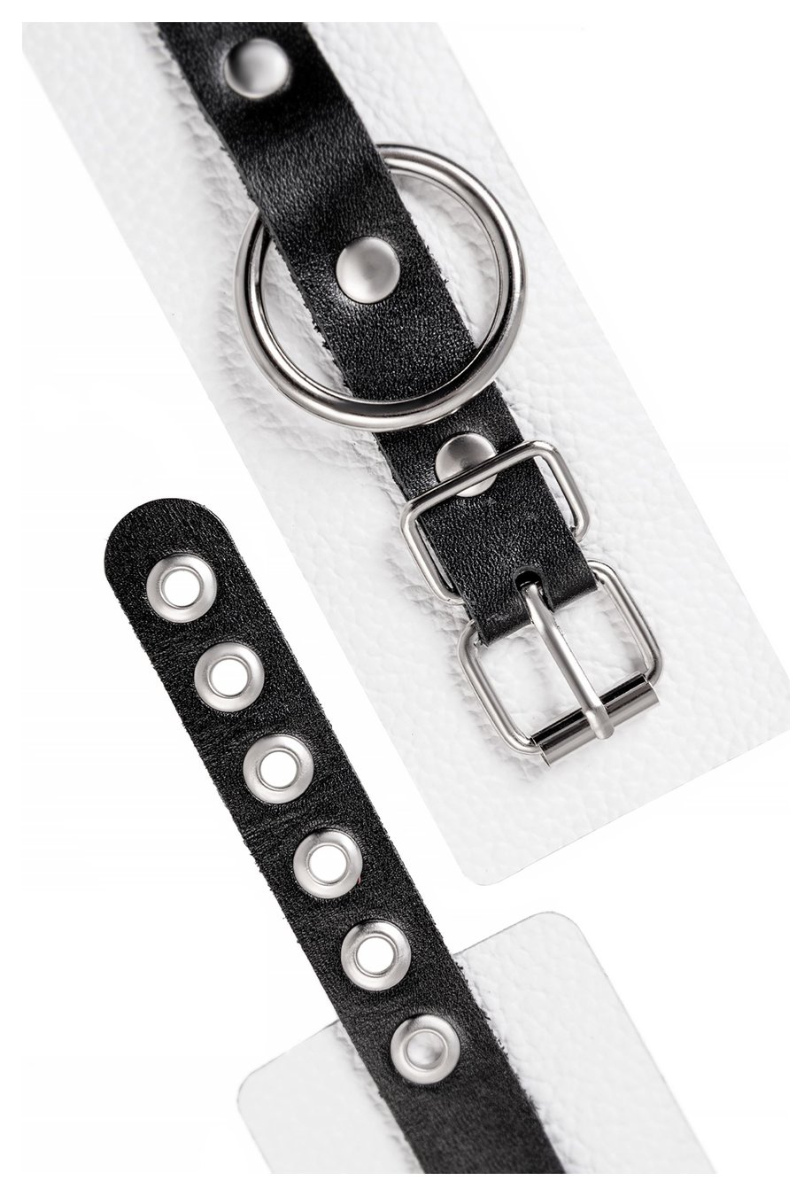 Бело-черные кожаные наручники с одним ремешком с люверсами