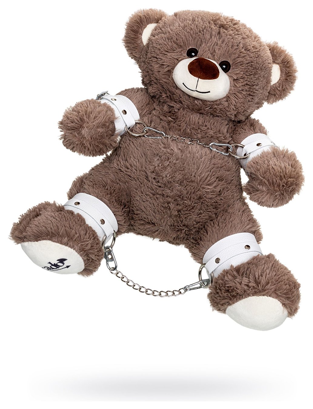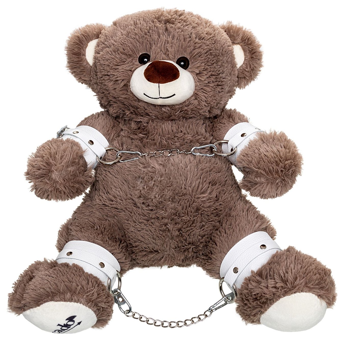 Бондажный набор: бурый мишка с белыми оковами и наручниками