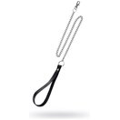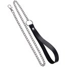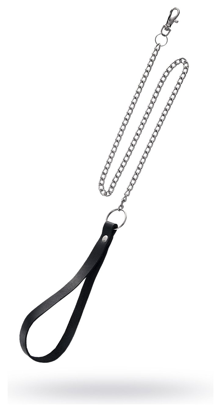 Поводок с ручкой из черной натуральной кожи и карабином для ошейника