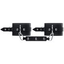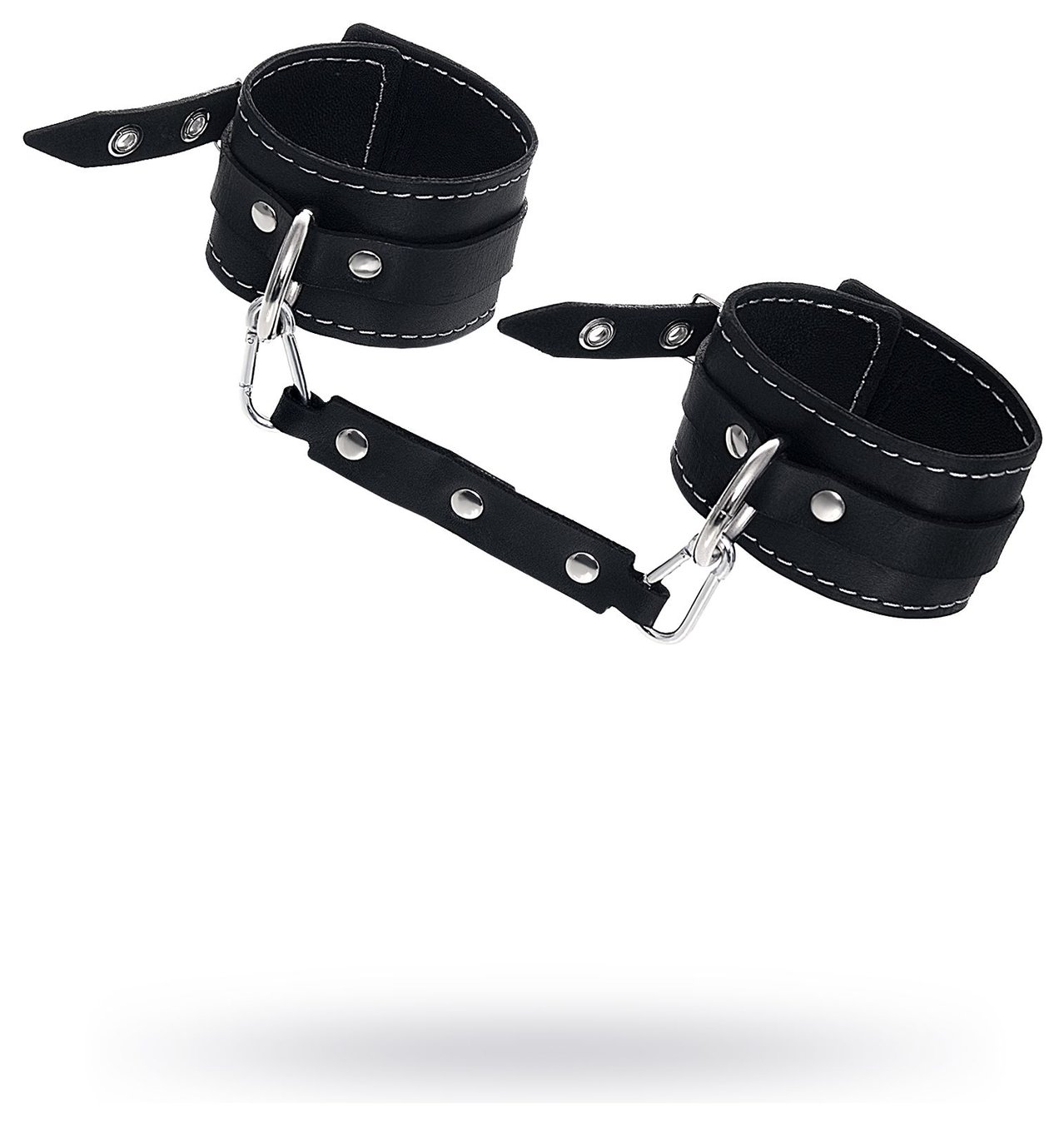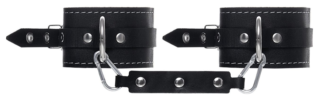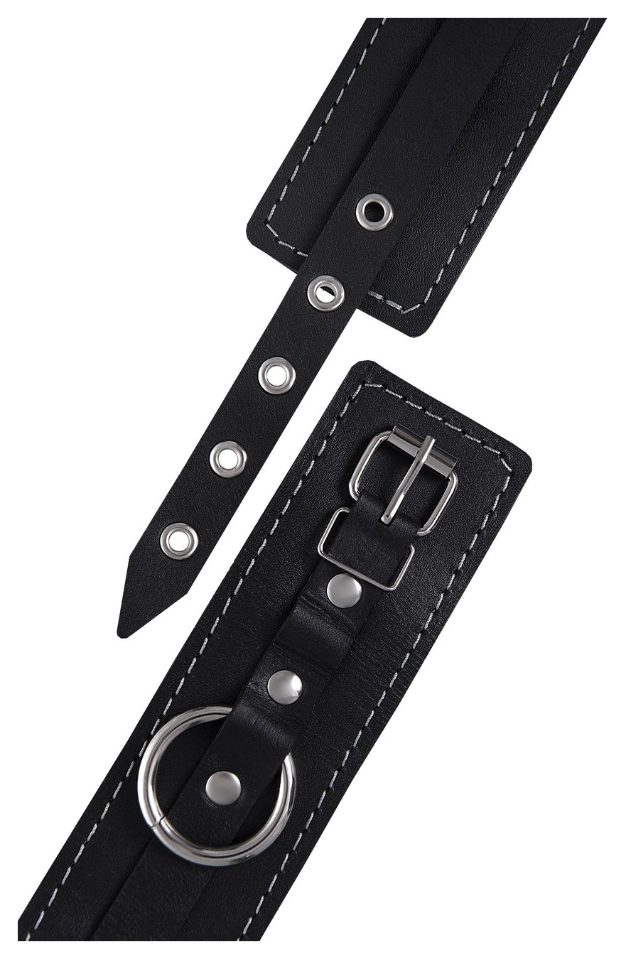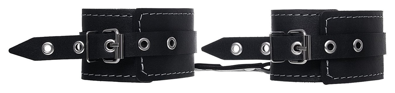 Черные двухслойные кожаные оковы с белой строчкой