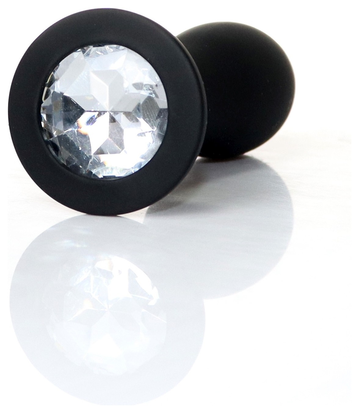 Черная анальная втулка с прозрачным кристаллом - 9,2 см