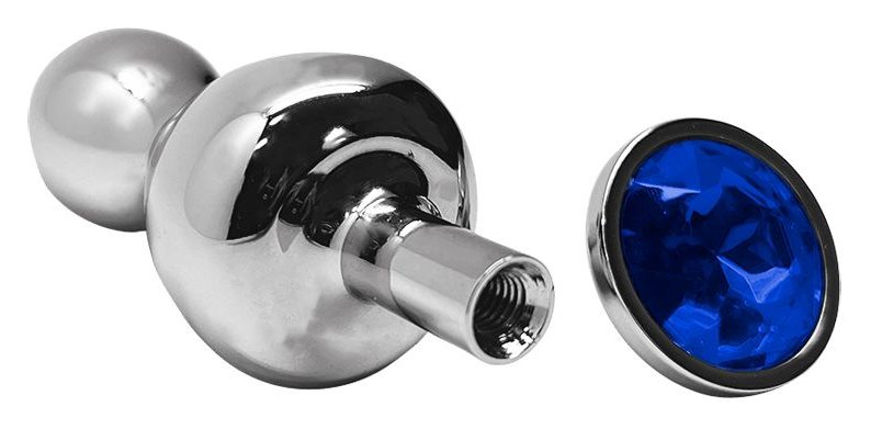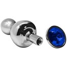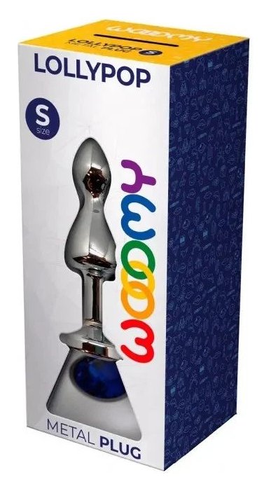 Серебристая анальная втулка Wooomy Lollypop Size S с синим кристаллом