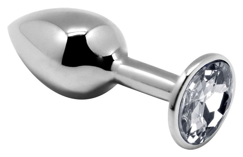 Серебристая анальная втулка с прозрачным кристаллом Mini Metal Butt Plug Size L - 9 см