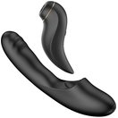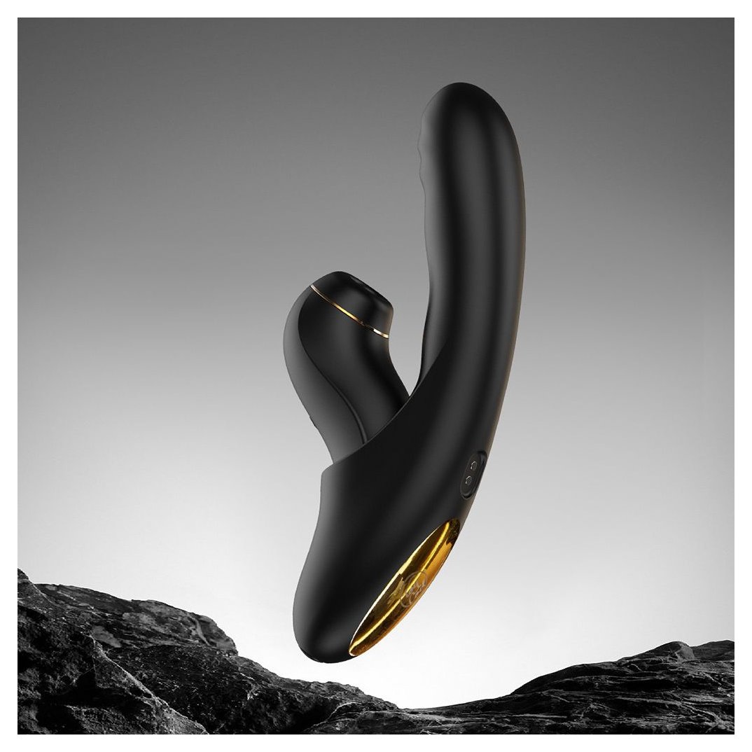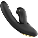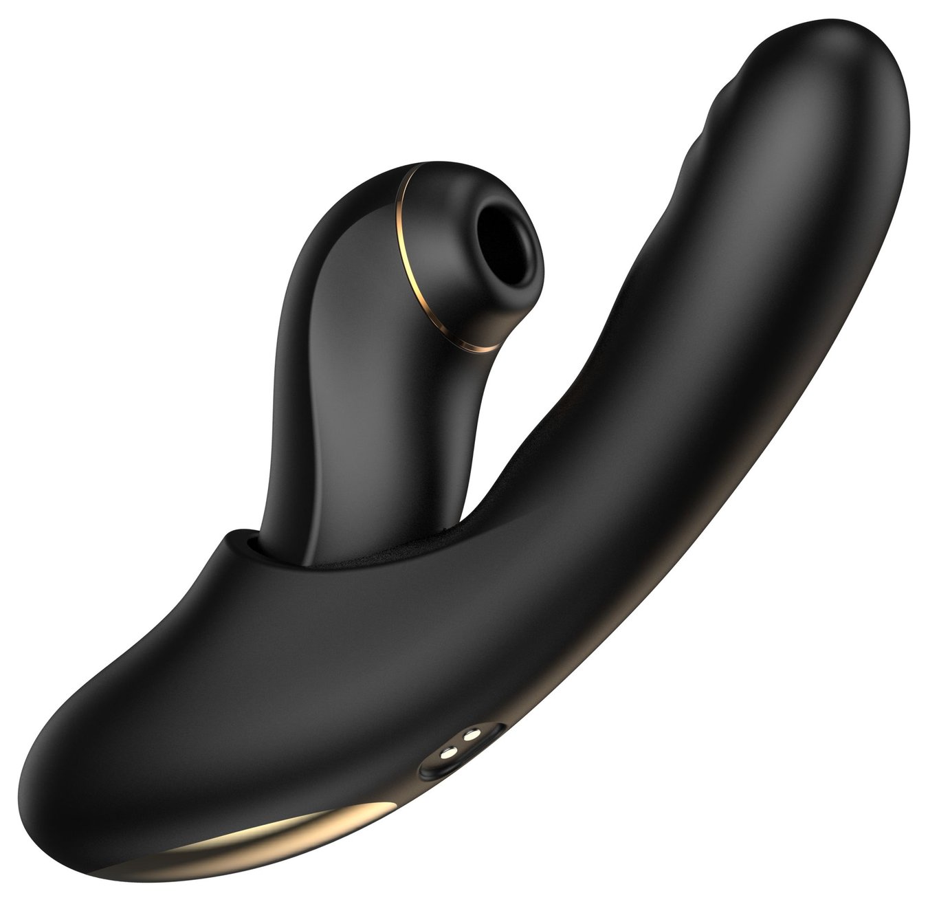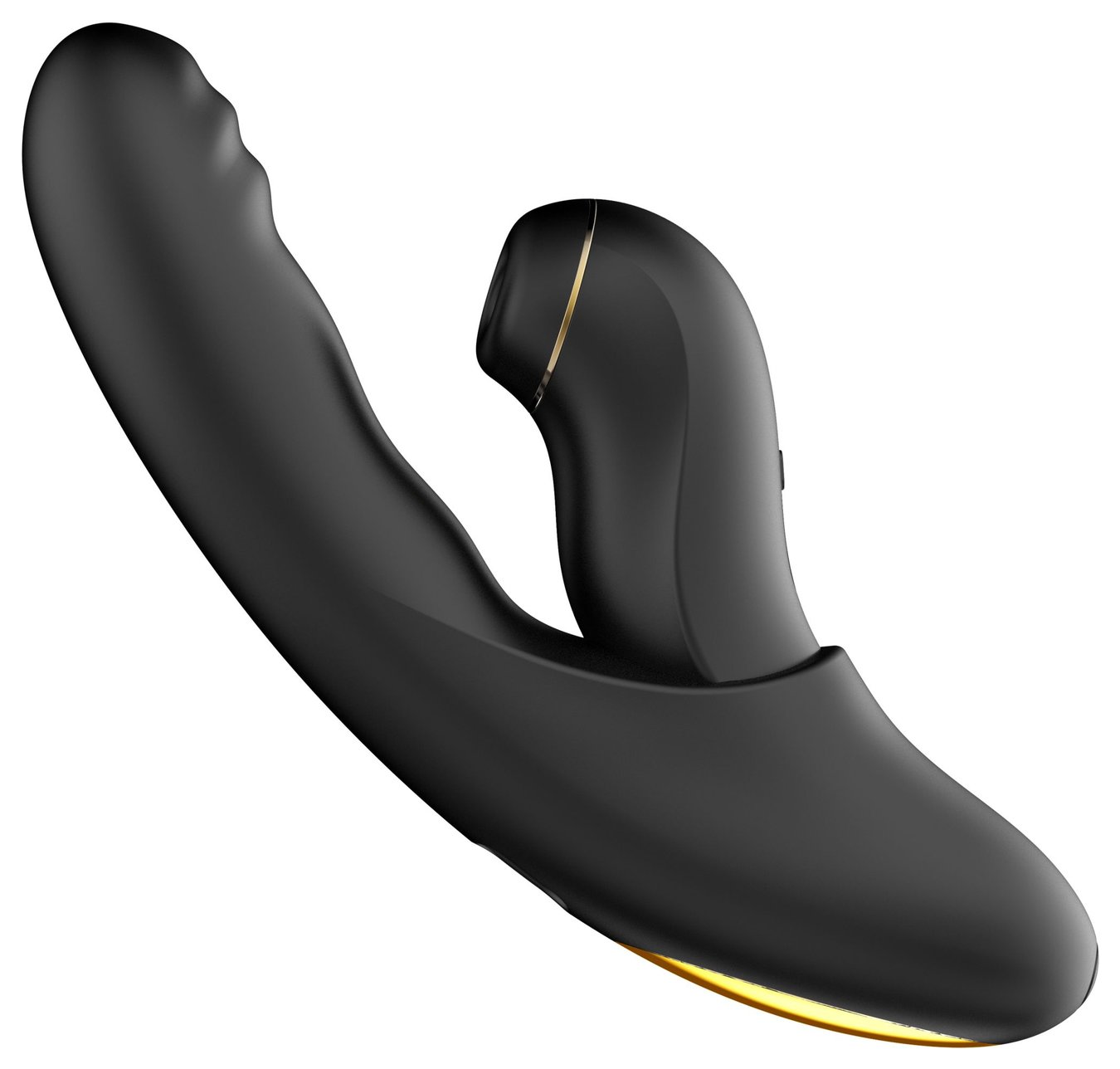 Черный вибратор с возвратно-поступательными движениями и вакуумом Fatima - 19,2 см