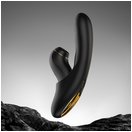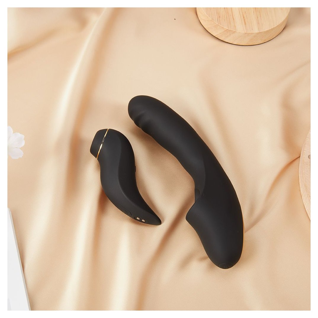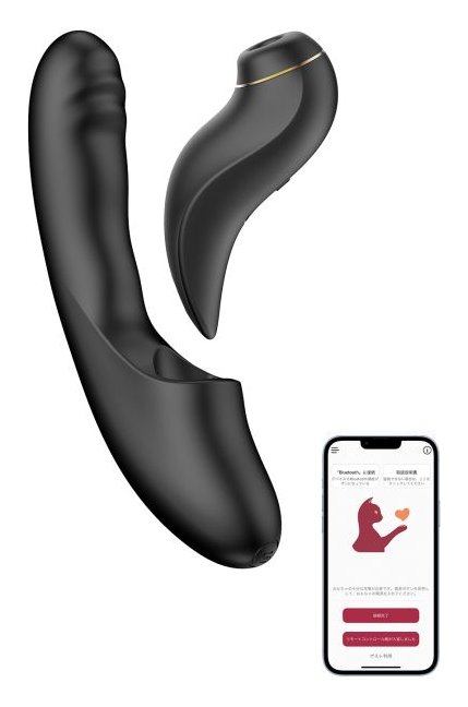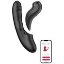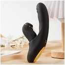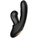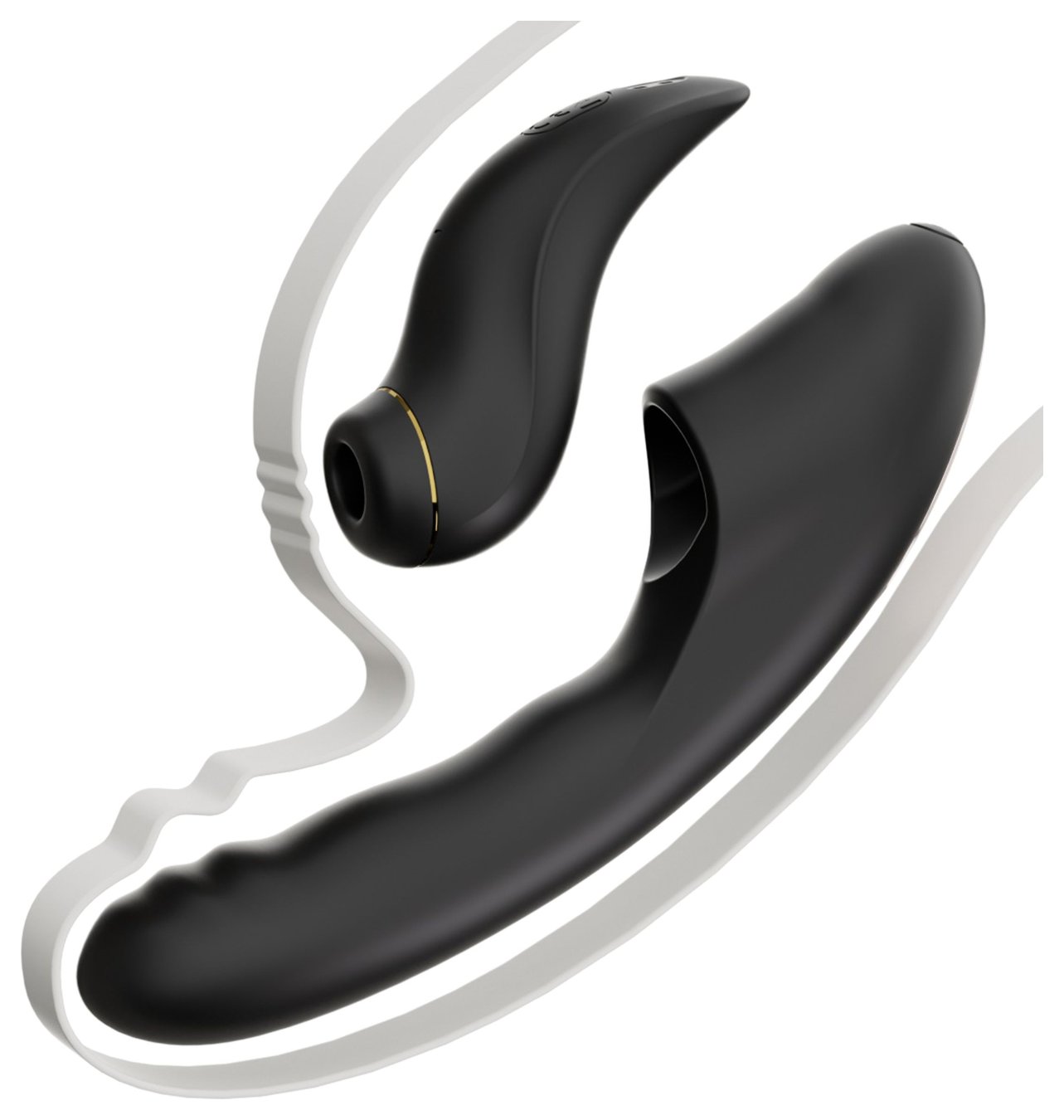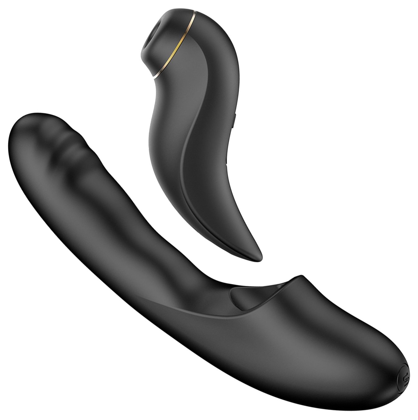 Черный вибратор с возвратно-поступательными движениями и вакуумом Fatima - 19,2 см