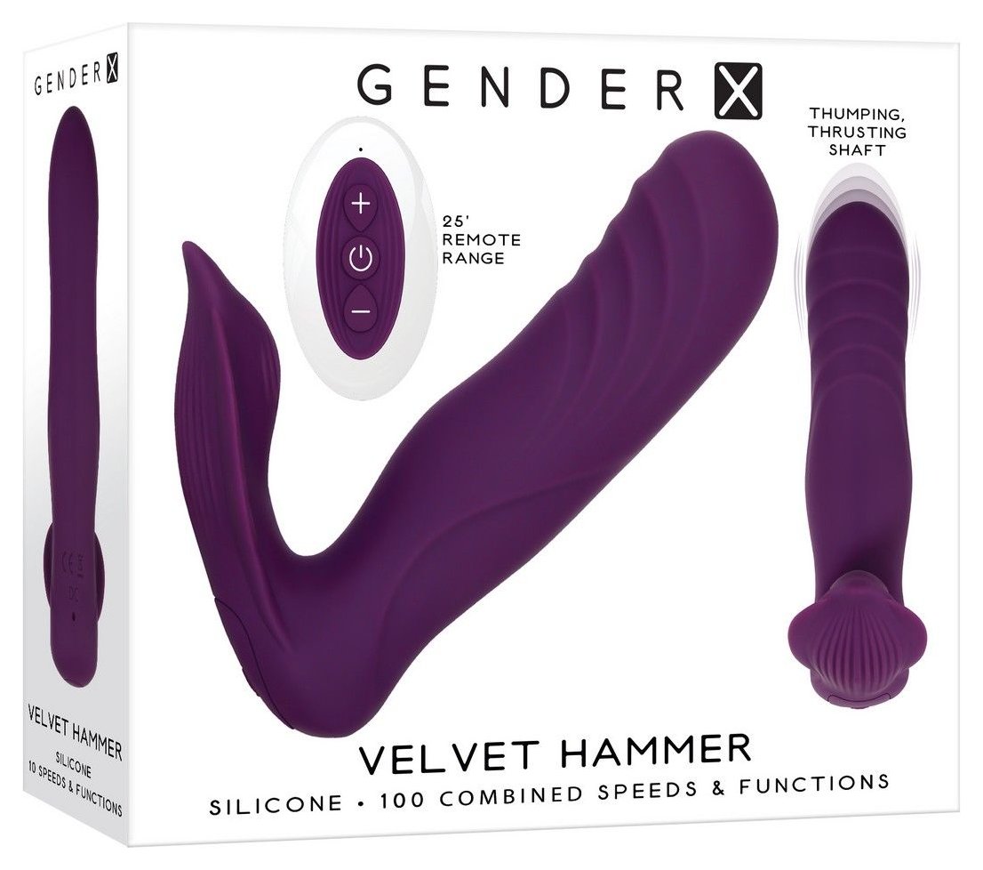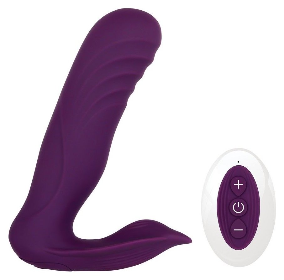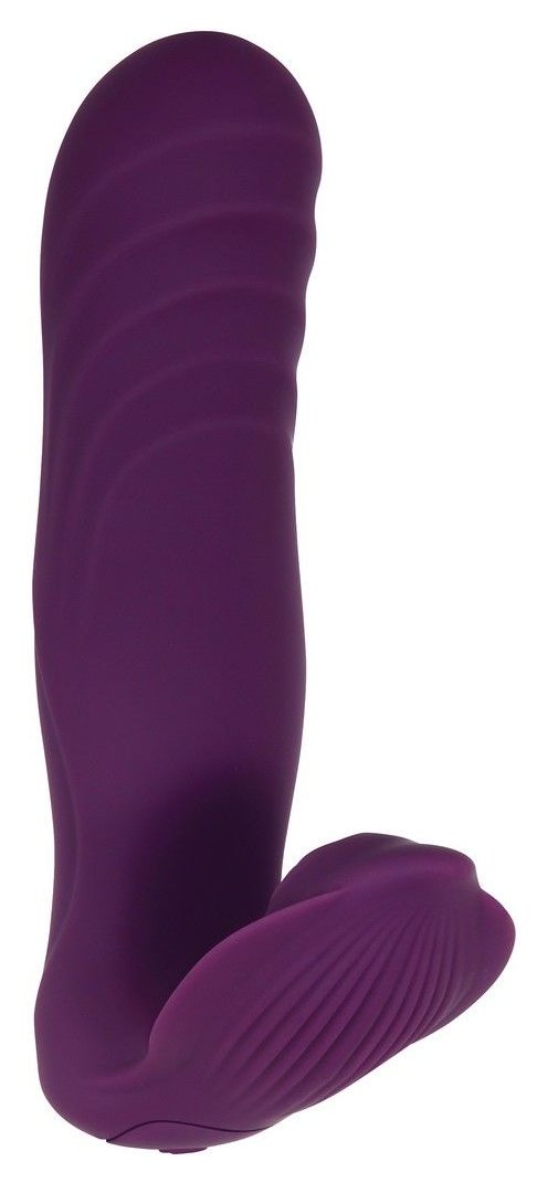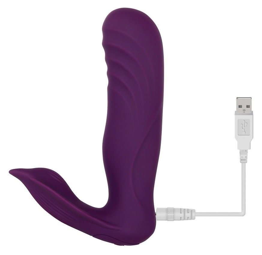Фиолетовый ударный вибромассажер с клиторальным стимулятором