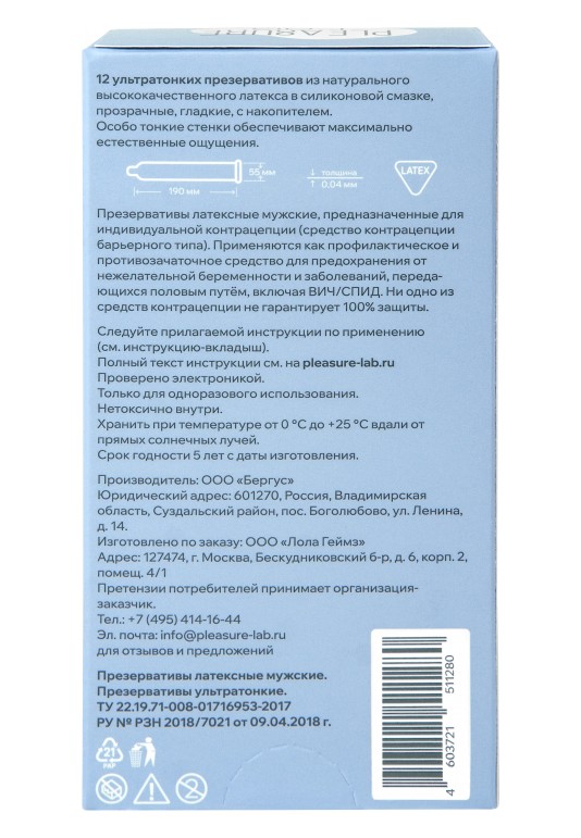 В ассортименте секс-товары презервативы есть в наличии товары для двоих поставщика Pleasure Lab (Россия). Материал, которому отдают предпочтение наши покупатели, подбирая себе один из этих товаров - латекс.