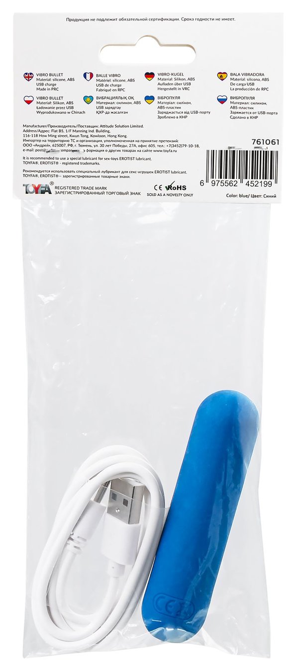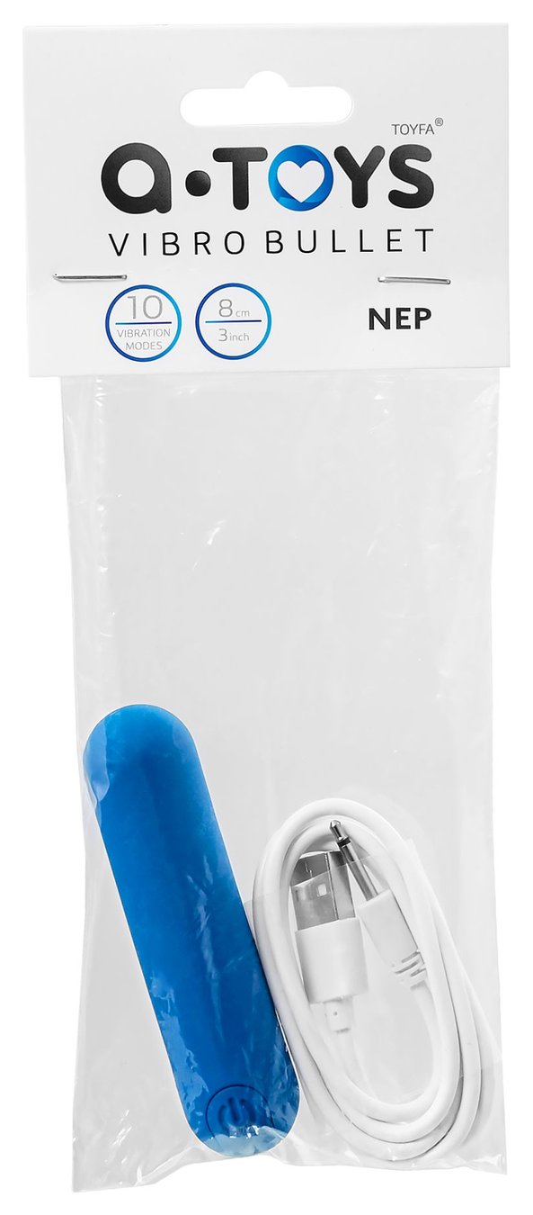 Синяя силиконовая перезаряжаемая вибропуля Nep - 8 см