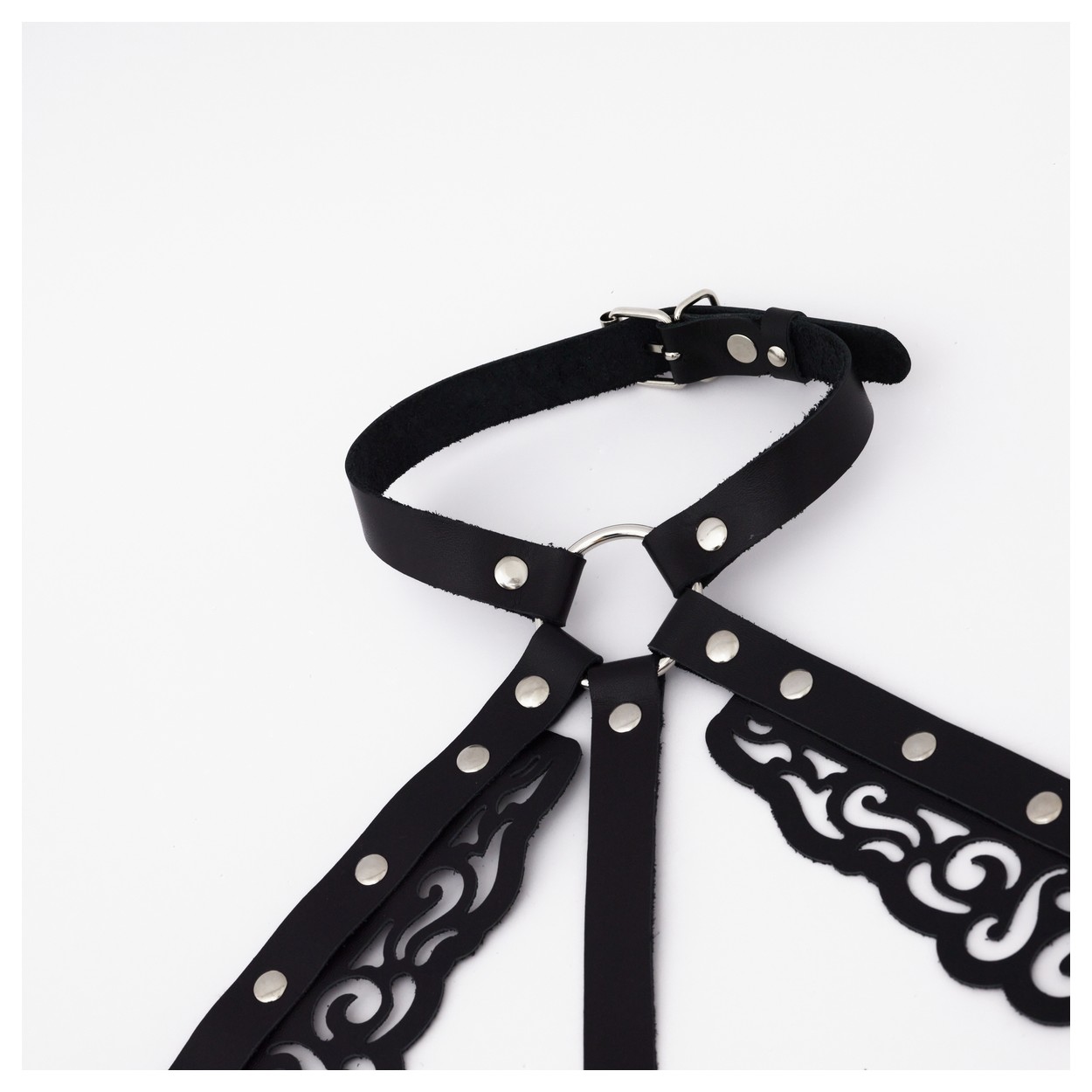 Черная резная портупея с клепками