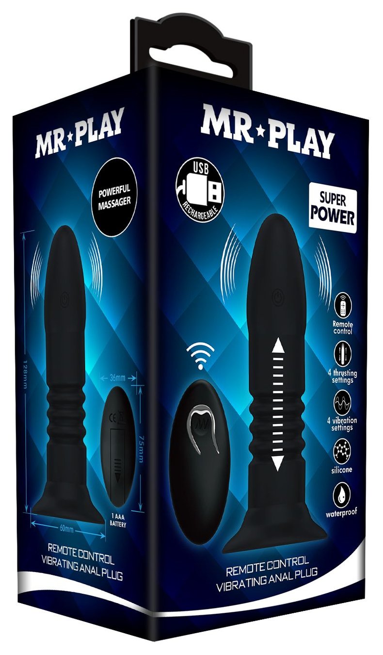 Черный анальный вибростимулятор с пультом ДУ - 13,8 см