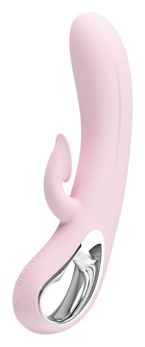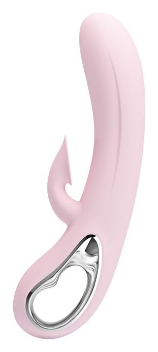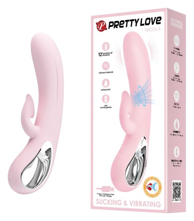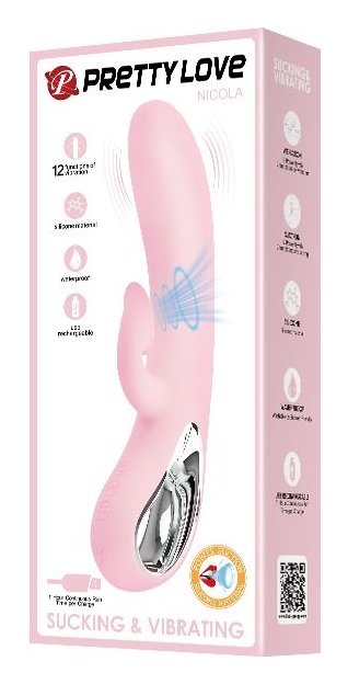 Нежно-розовый вибратор Nicola с вакуумной клиторальной стимуляцией - 24 см