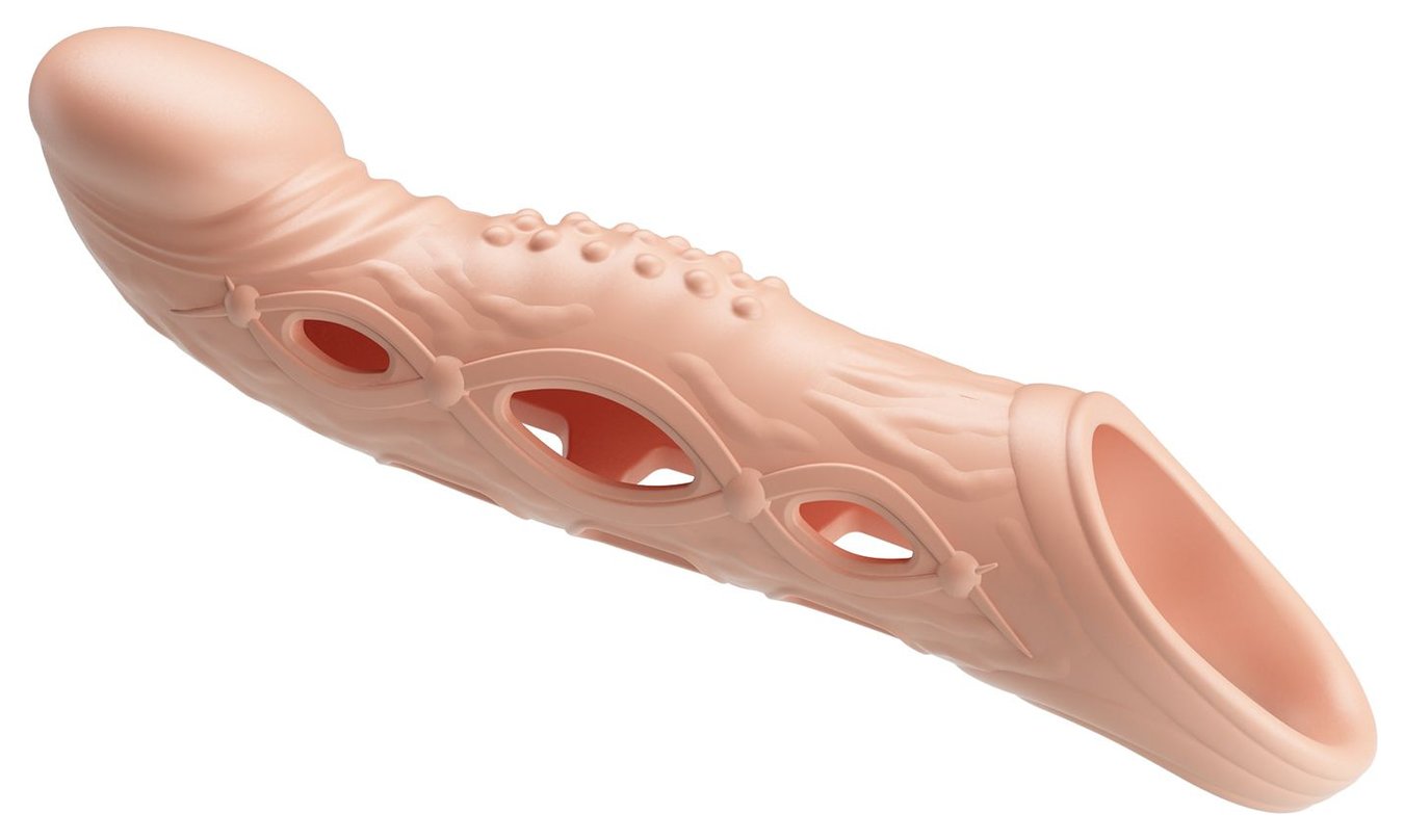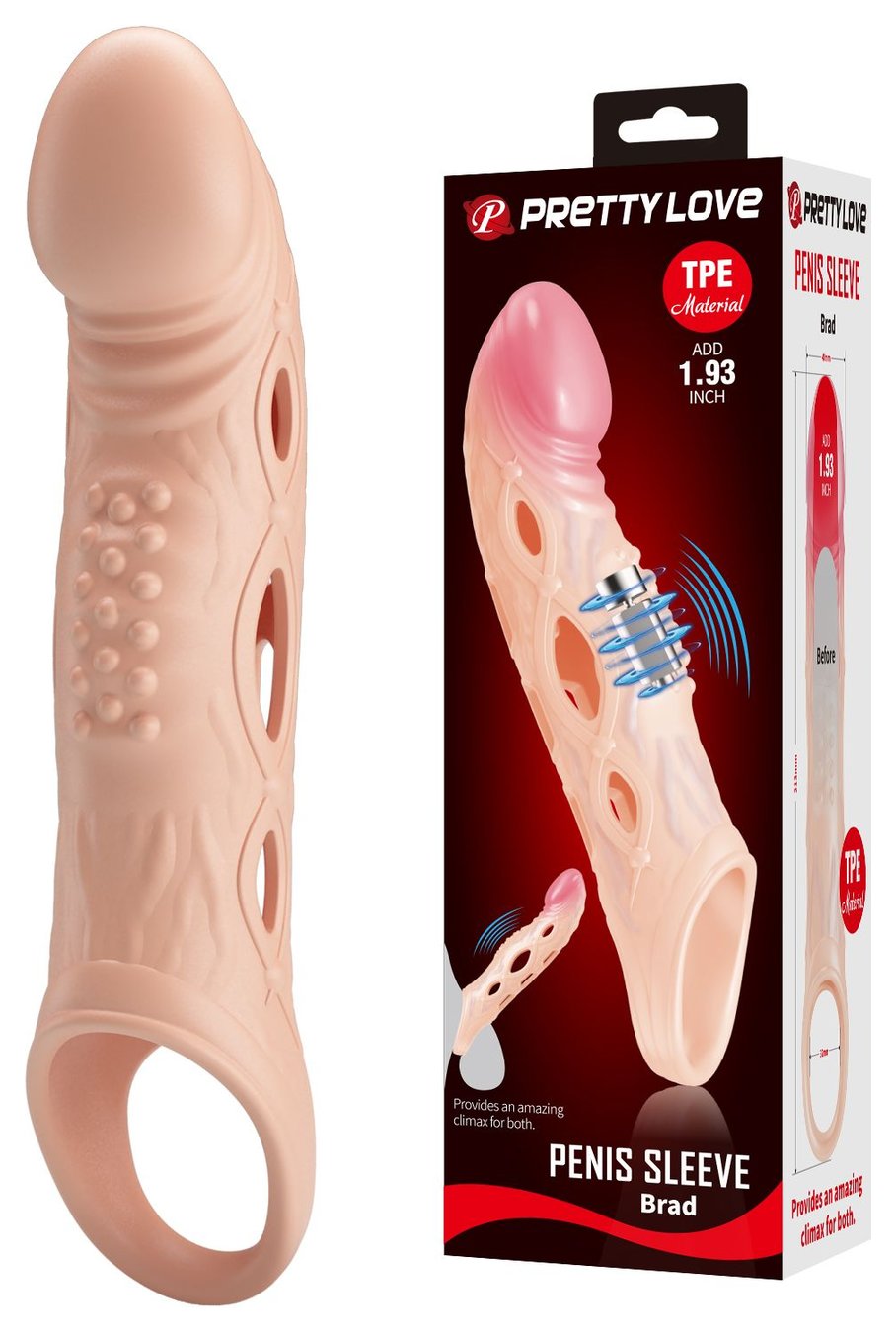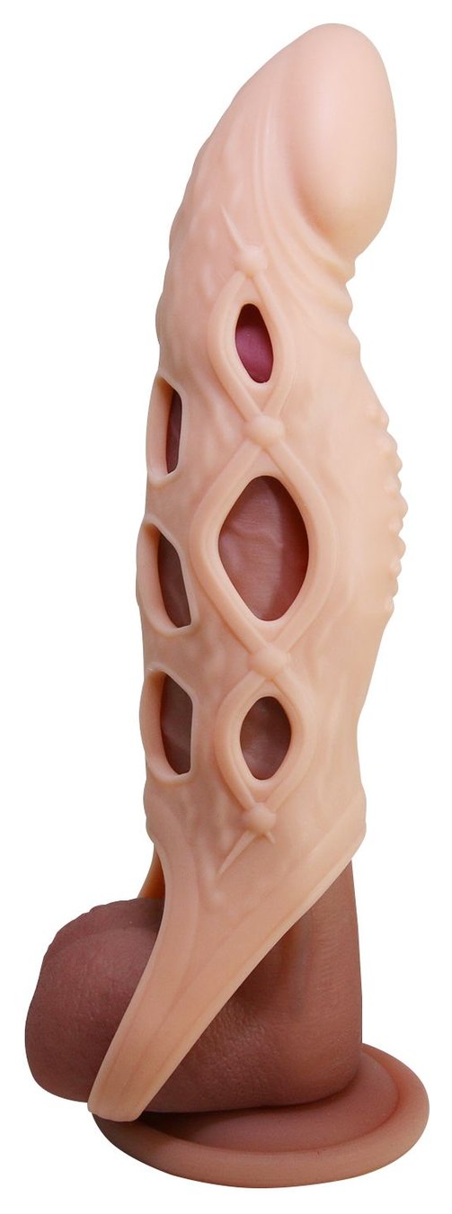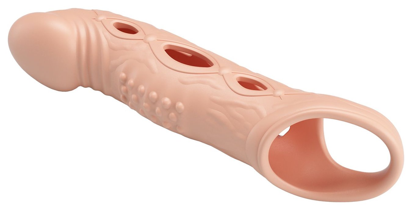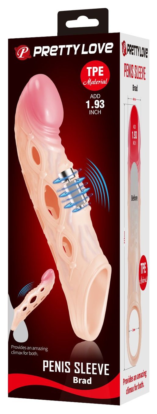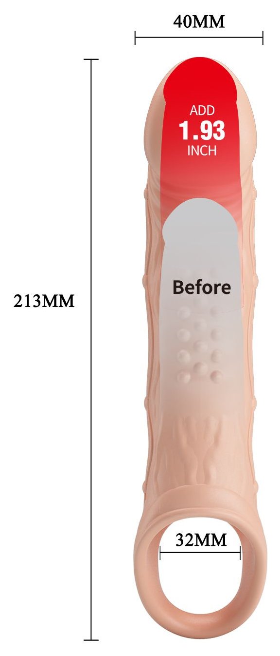 Телесная удлиняющая насадка с рельефом и вибрацией Brad - 21,3 см