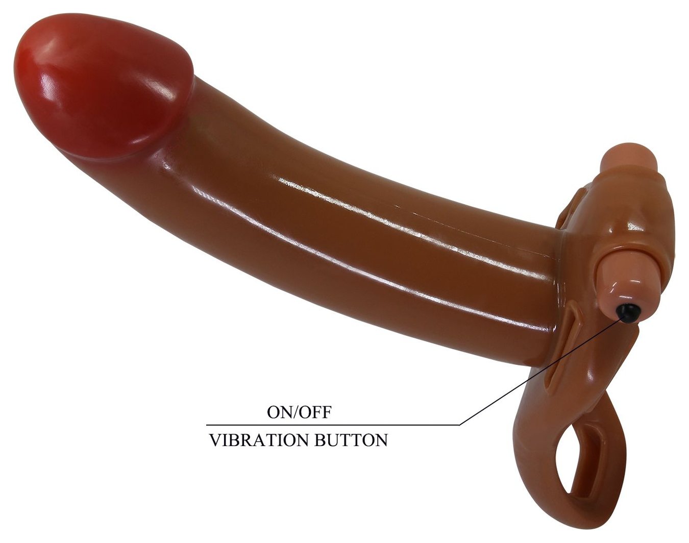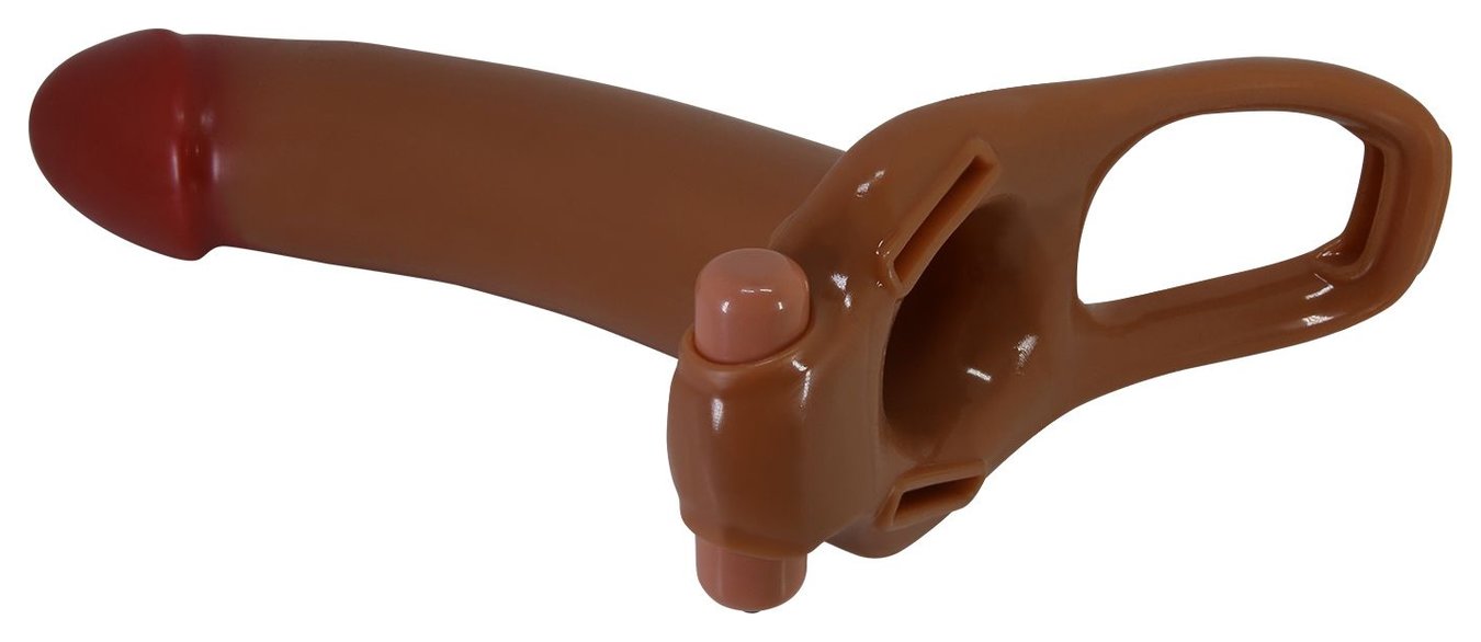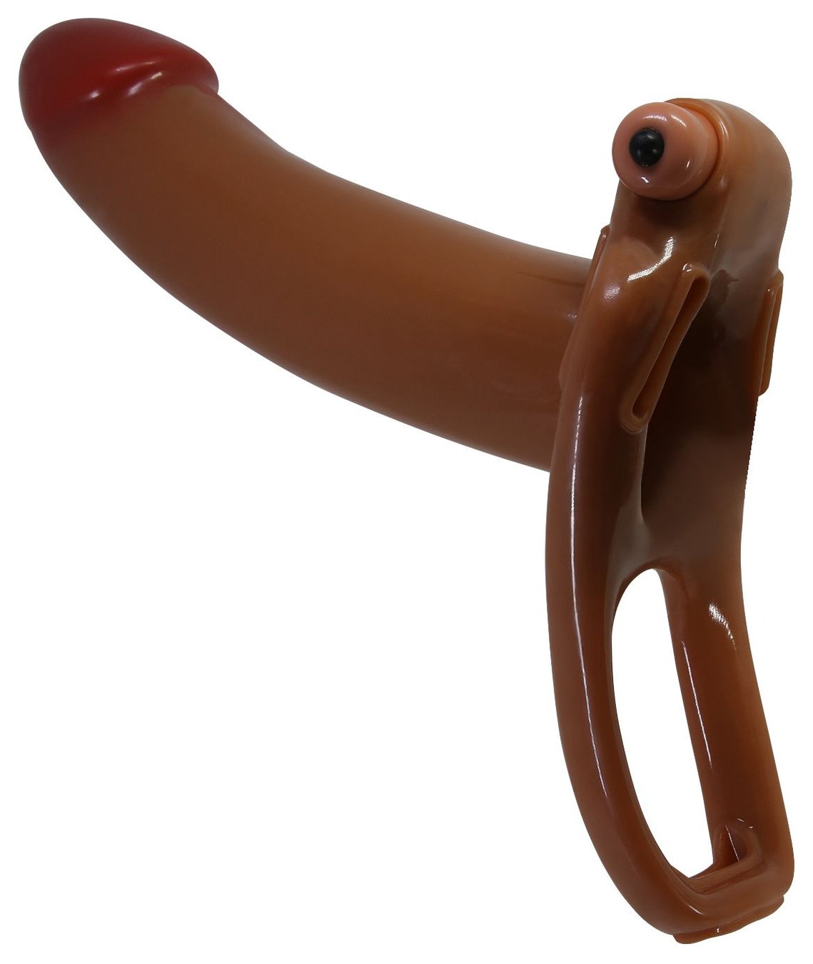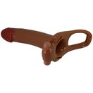 Мужской полый страпон с насадкой цвета карамели Bradden - 17,1 см