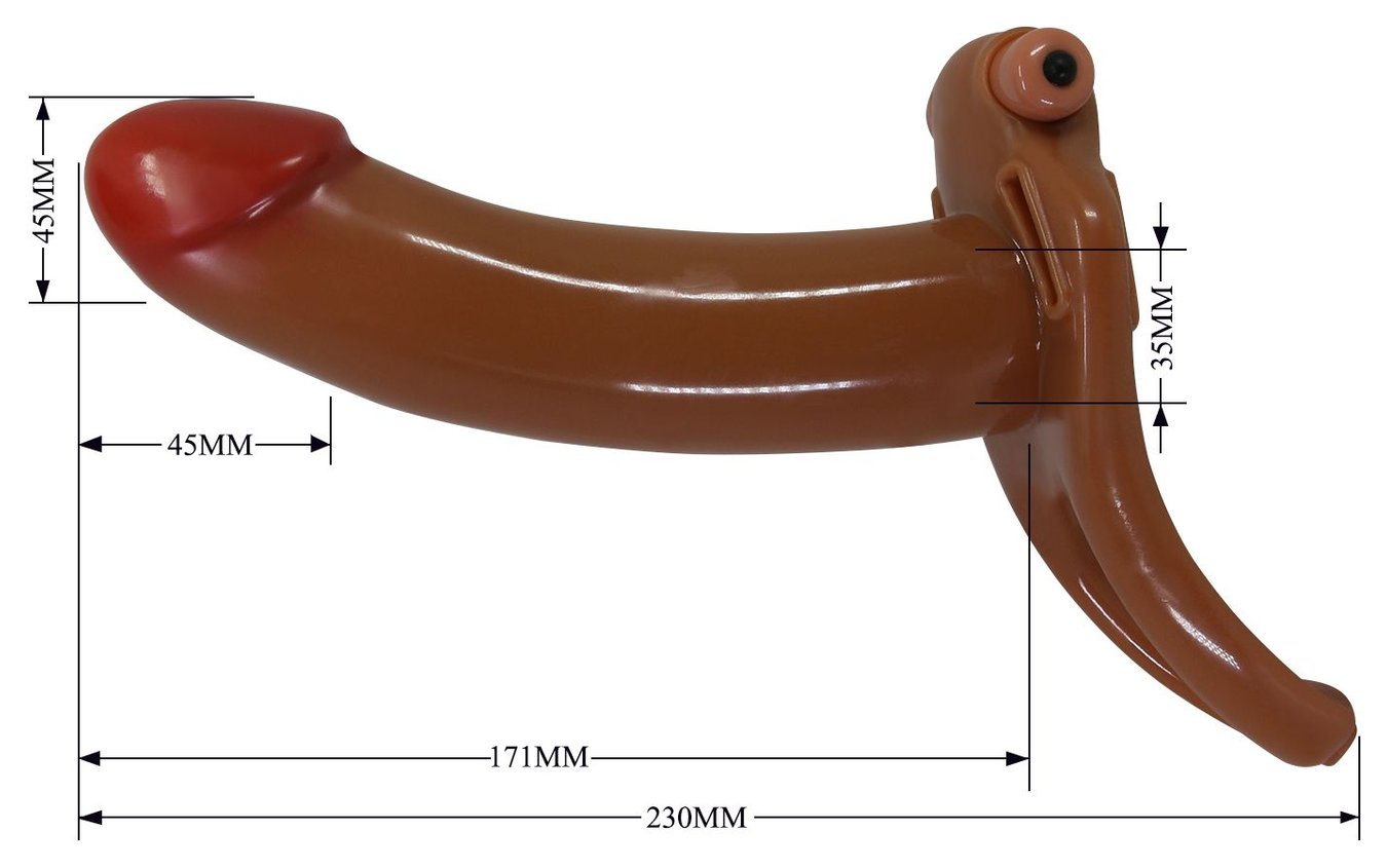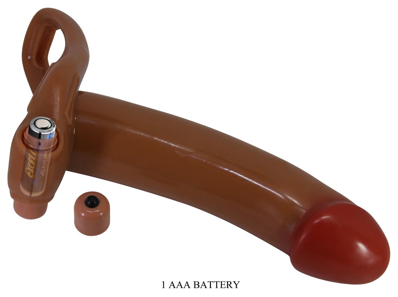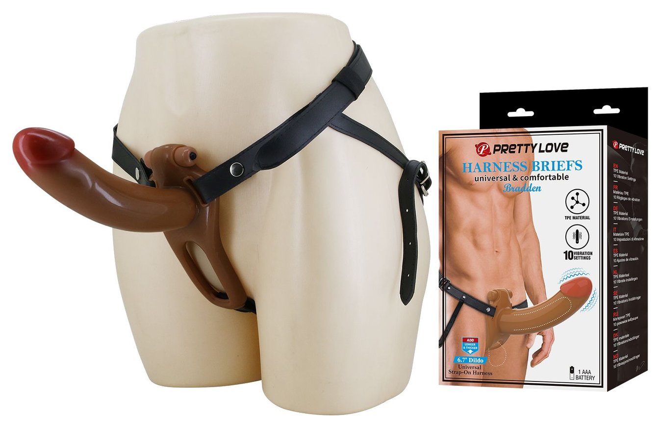 Мужской полый страпон с насадкой цвета карамели Bradden - 17,1 см
