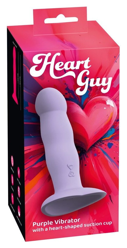 Сиреневый вибростимулятор на присоске Heart Guy - 19,5 см