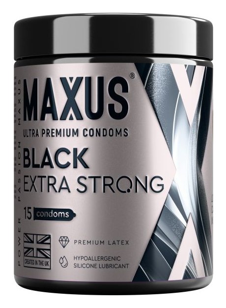 Черные утолщенные презервативы MAXUS Extra Strong с железным кейсом - 15 шт