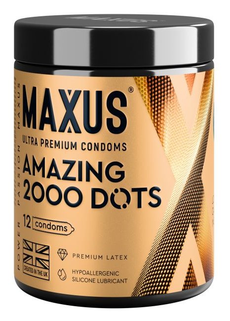 Точечные презервативы MAXUS 2000 Amazing Dots с железным кейсом - 12 шт
