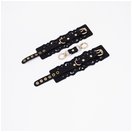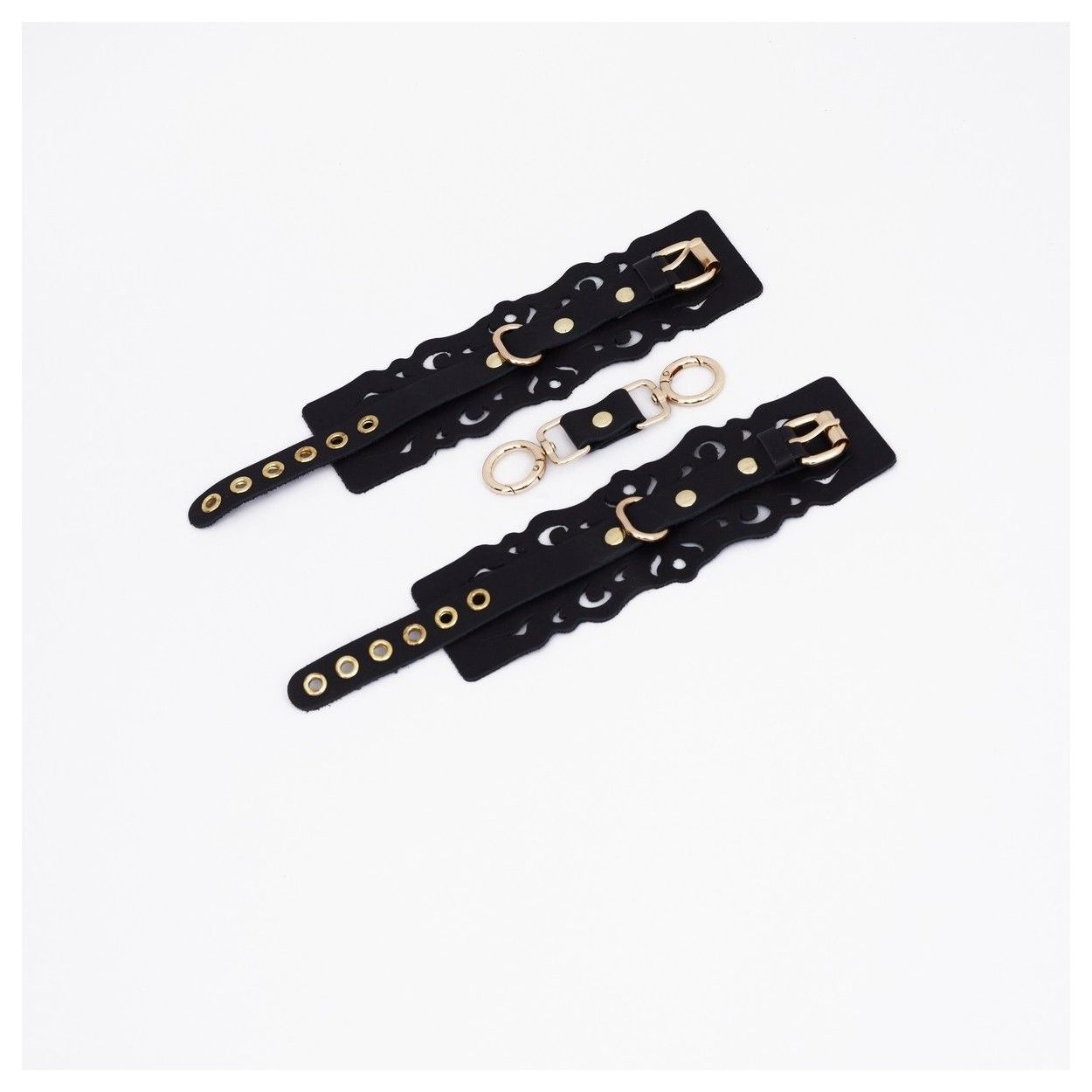 Черные кожаные наручники с узорами и золотистой фурнитурой