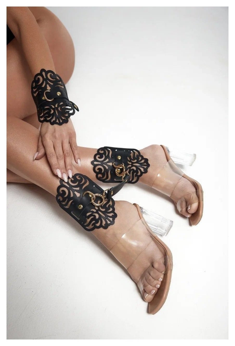 Фигурный набор для БДСМ-игр с узорами и золотистой фурнитурой