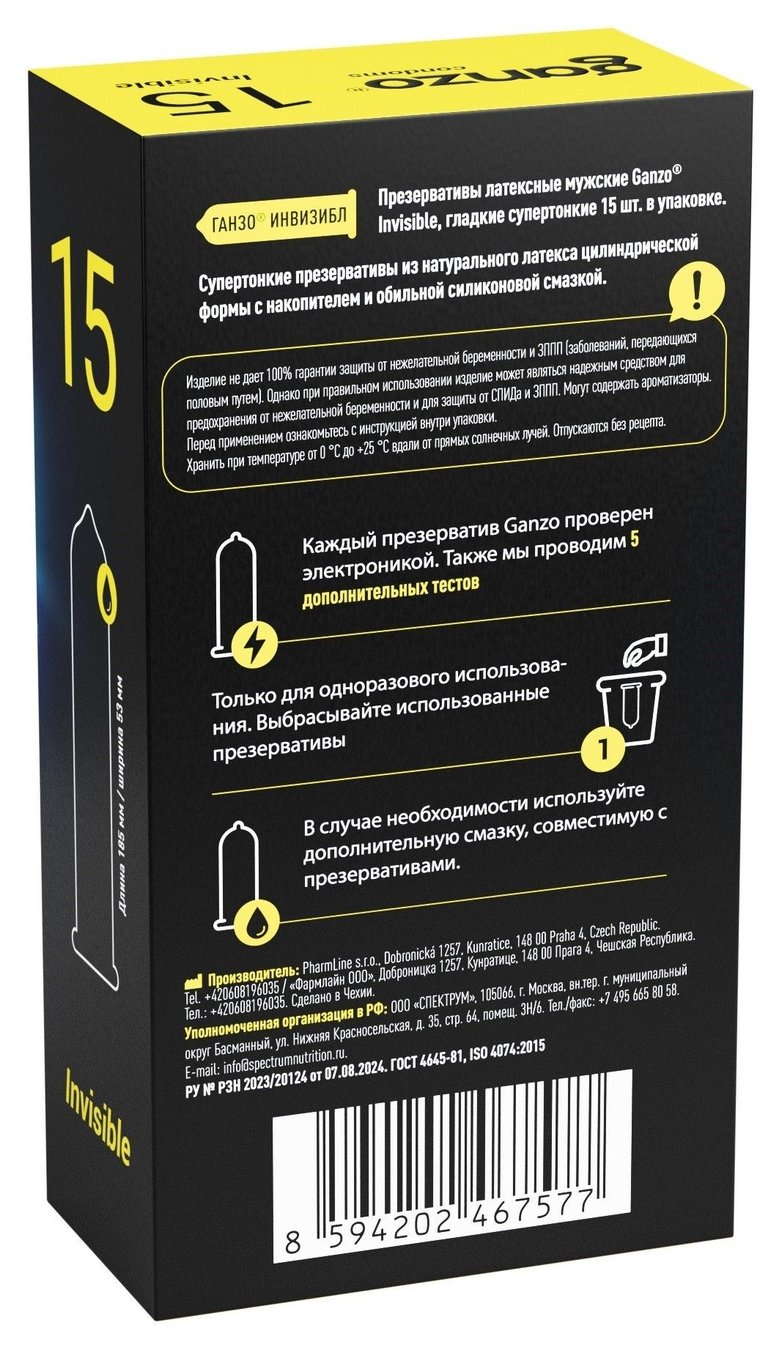 Супертонкие презервативы Ganzo Invisible - 15 шт