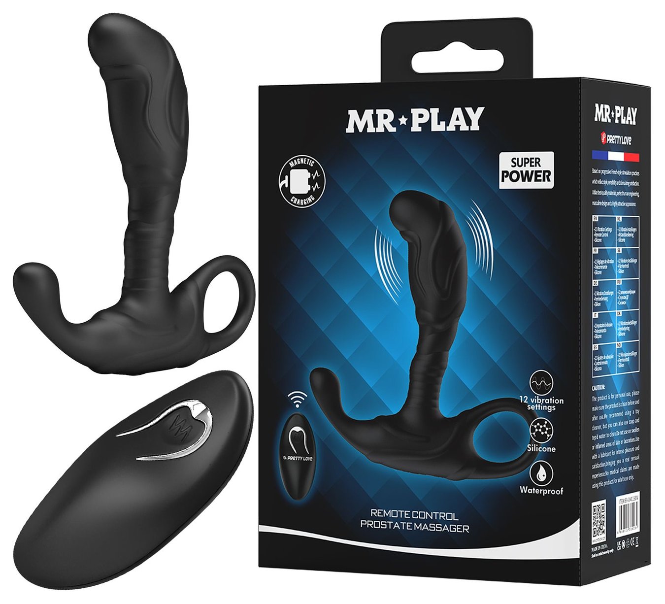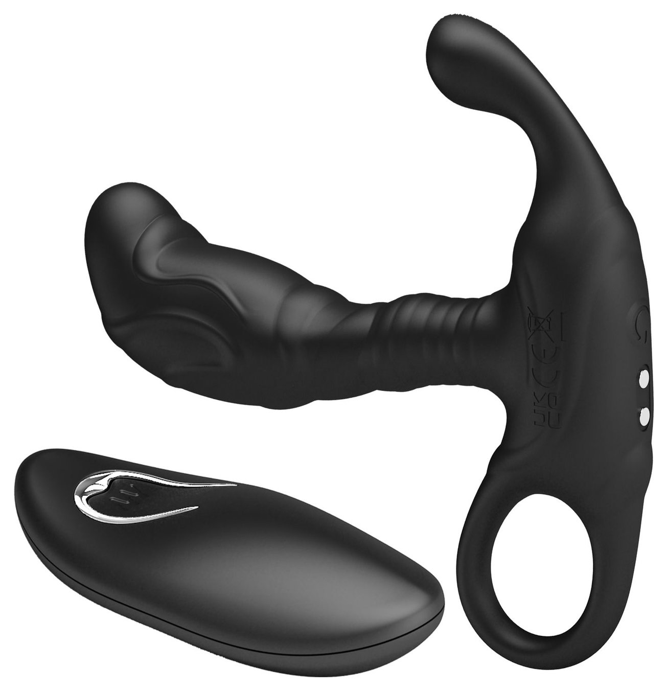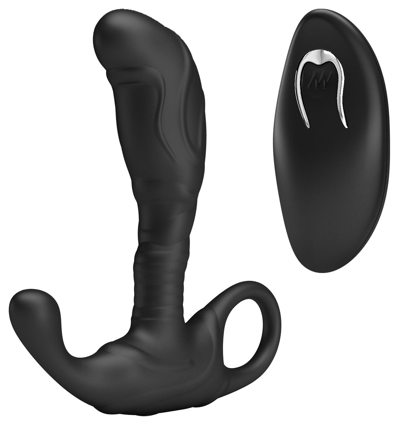 Черный изогнутый массажёр простаты с вибрацией и пультом ДУ