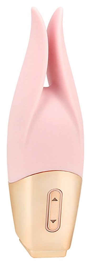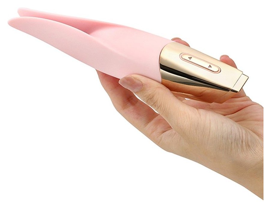 Нежно-розовый мини-вибратор с раздвоенным кончиком - 12,3 см