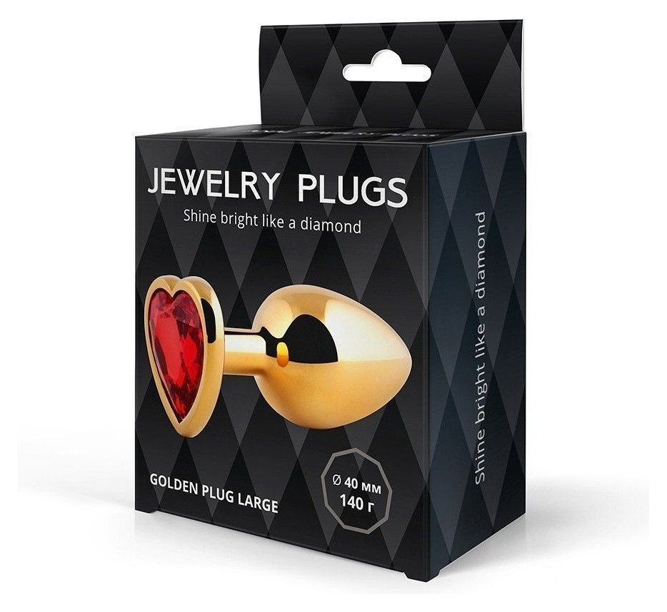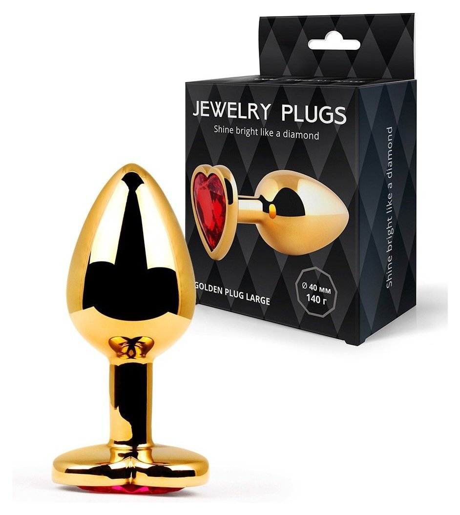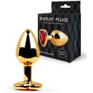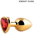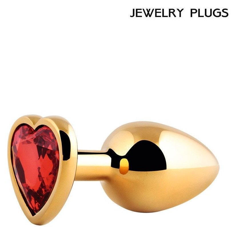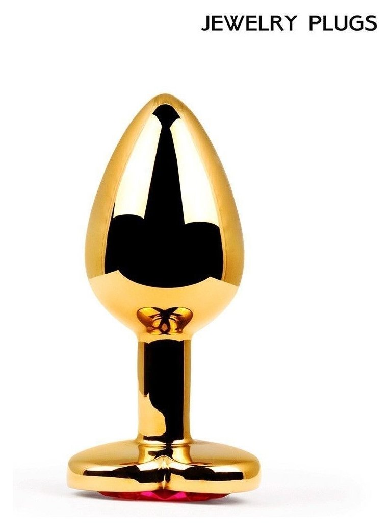 Золотистая анальная пробка с красным кристаллом - 9 см