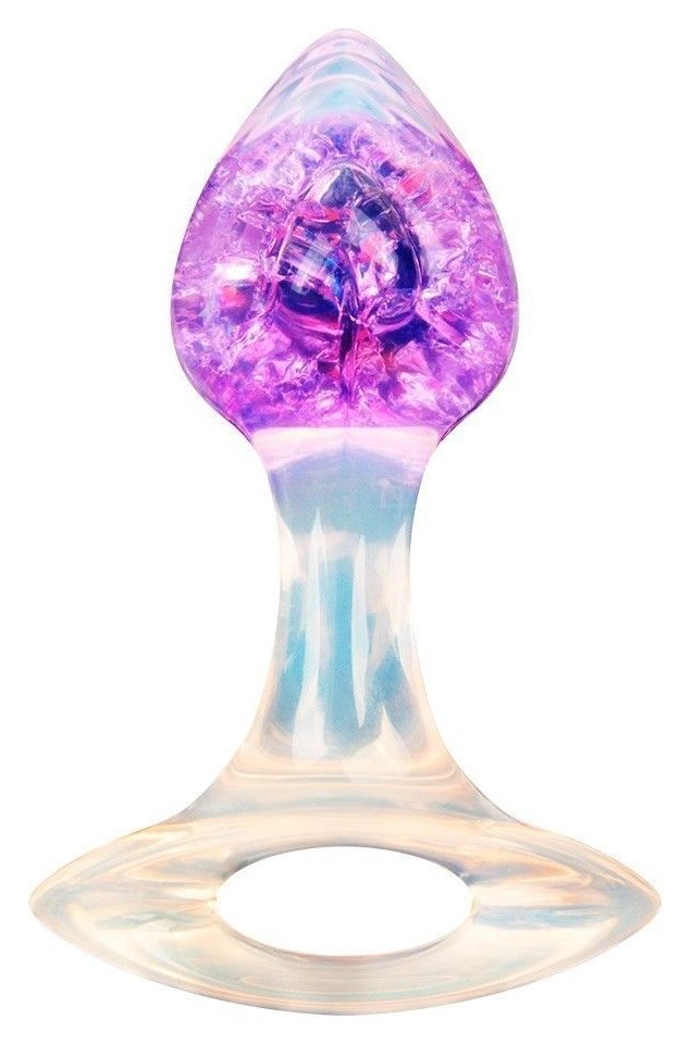 Сиреневатая анальная пробка с ручкой - 8,5 см