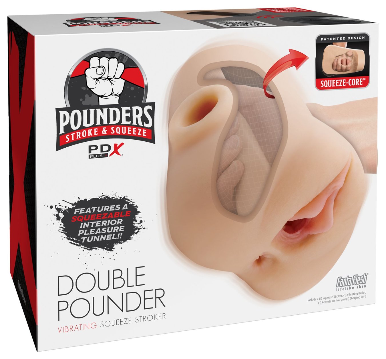 Телесный мастурбатор с вибрацией Double Pounder Vibrating Squeeze Stroker
