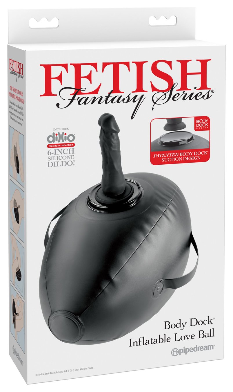 Черный надувной мяч с платформой для фиксации дилдо Body Dock Inflatable Love Ball