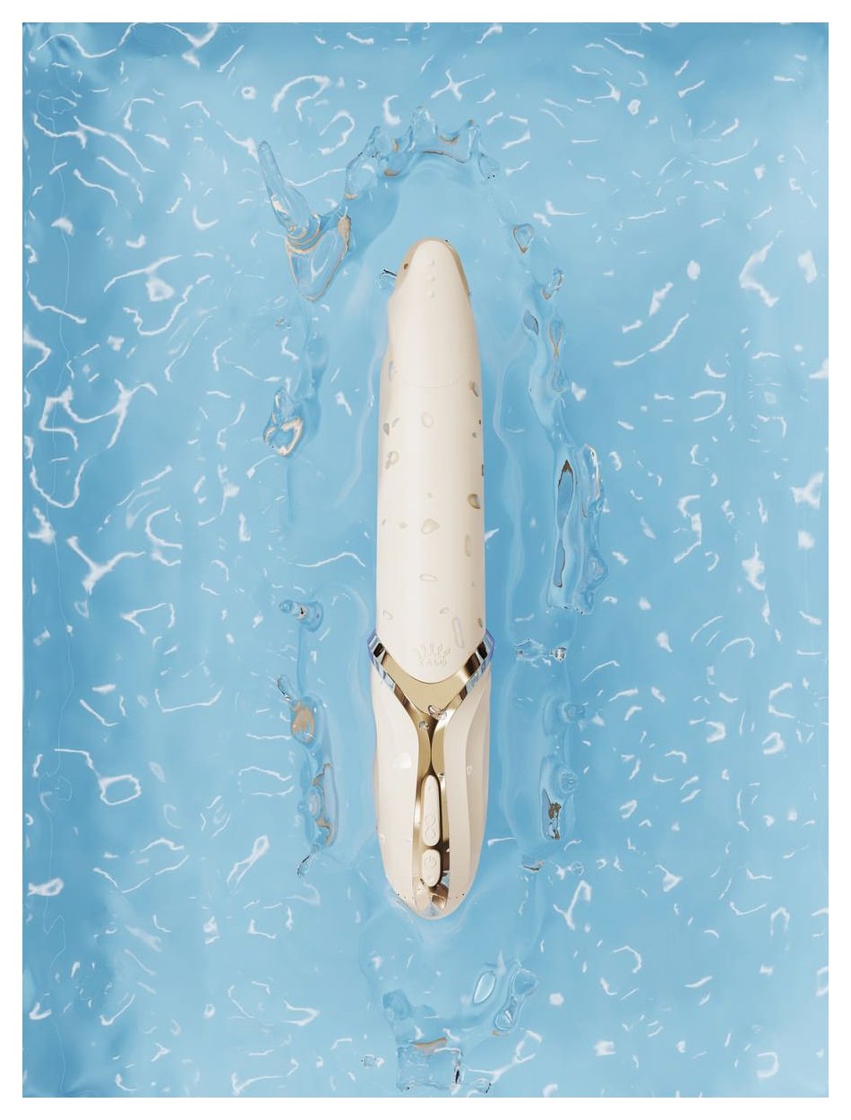 Бежевый вибростимулятор с имитацией оральных ласк и функцией нагрева Eve