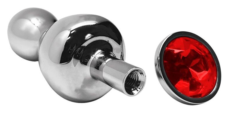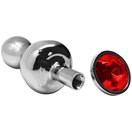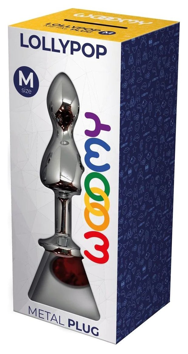 Серебристая анальная втулка Wooomy Lollypop M с красным кристаллом - 9,4 см