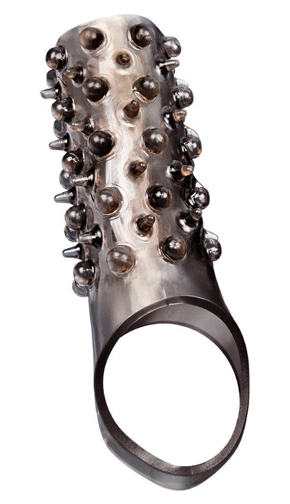 Дымчатая насадка на пенис с шипами и выпуклостями - 12,5 см