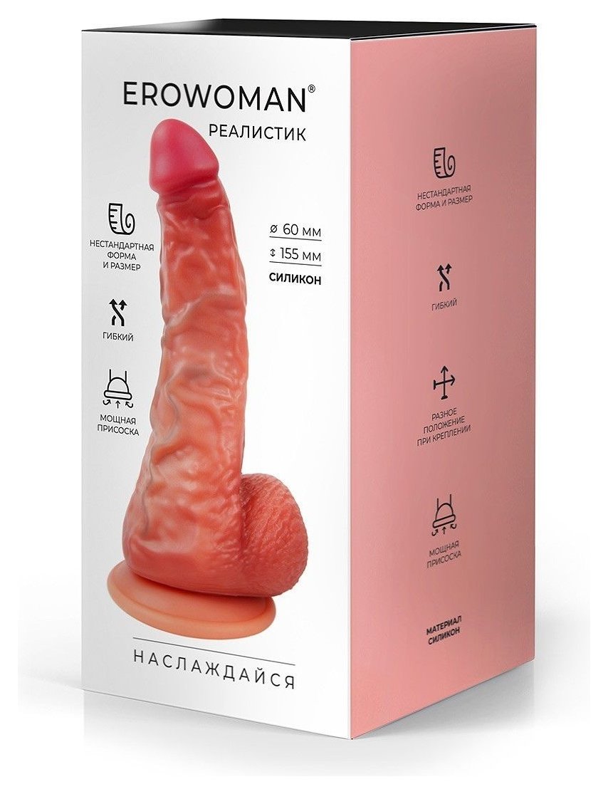 В ассортименте фаллоимитаторы реалистичные есть в наличии товары для женщин поставщика Erowoman(Eroman - Россия). Материал, которому отдают предпочтение наши покупатели, подбирая себе один из этих товаров - силикон. А предпочитаемые размеры: диаметр 6 см, длина 24 см.