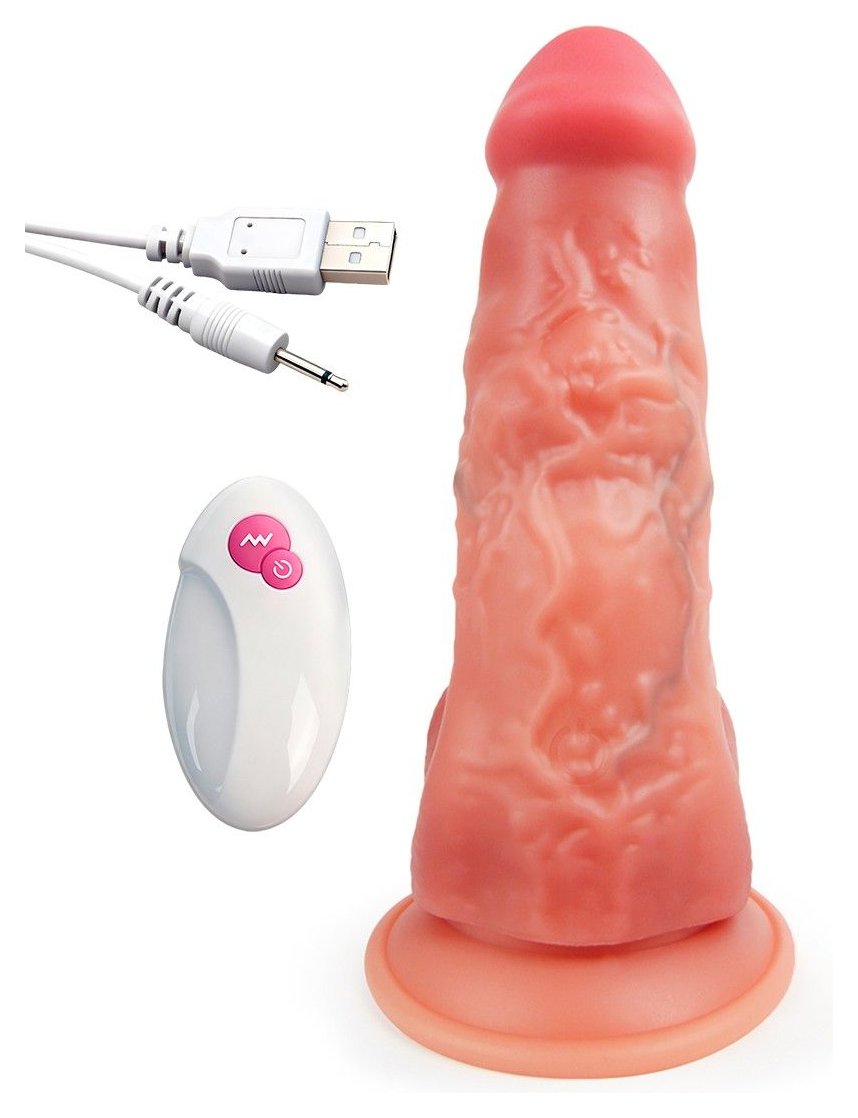 Телесный вибратор-реалистик с пультом ДУ - 25 см