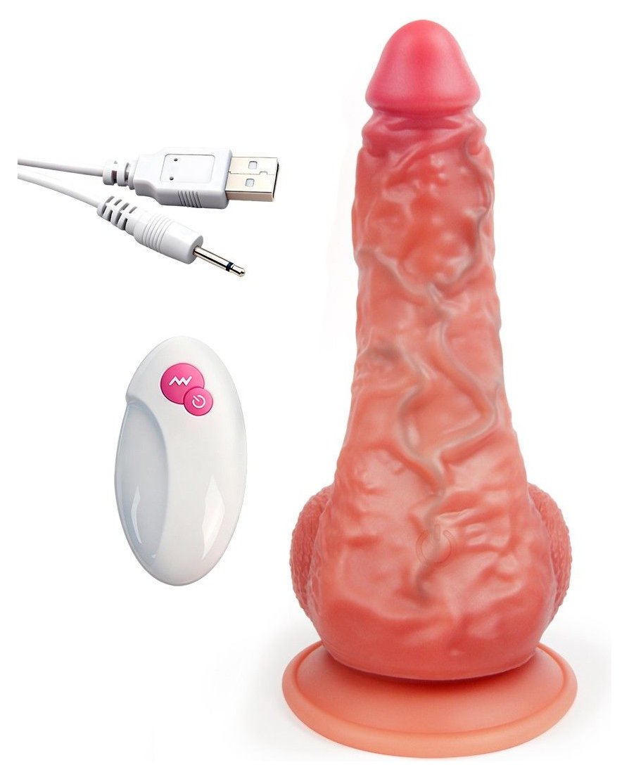Телесный вибратор-реалистик с пультом ДУ - 24 см