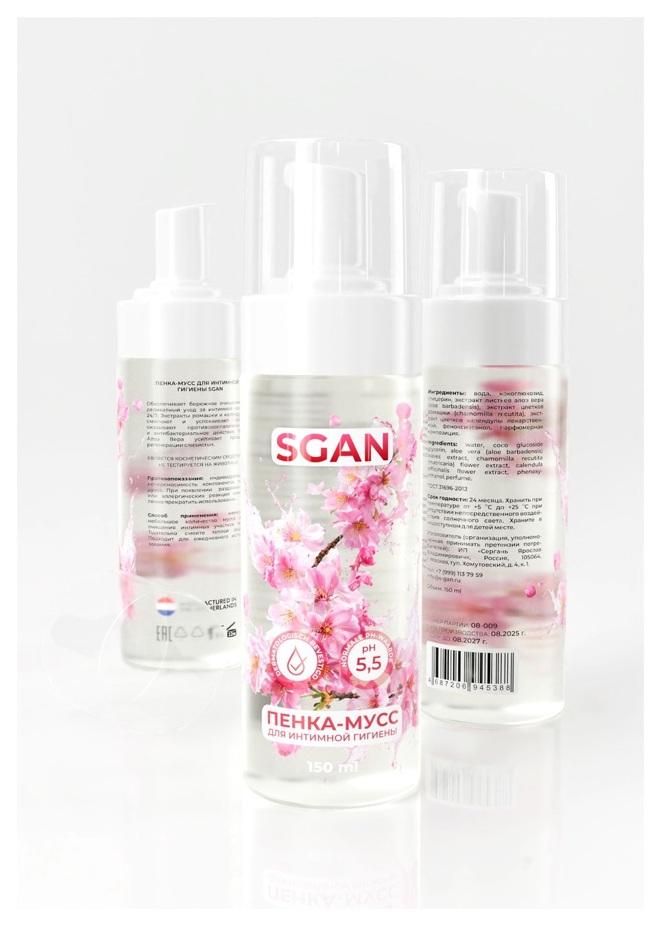 Пенка-мусс для интимной гигиены SGAN с пребиотиками - 150 мл